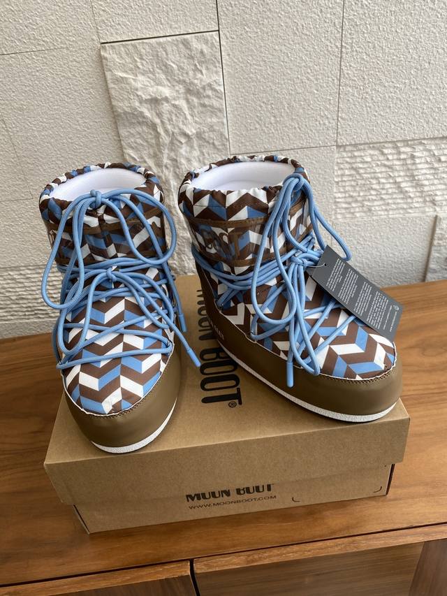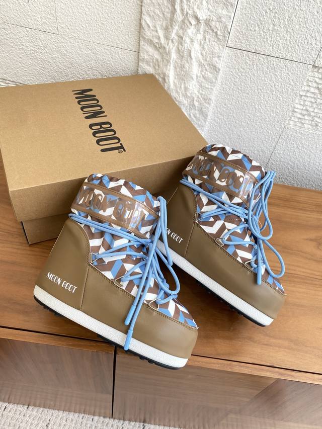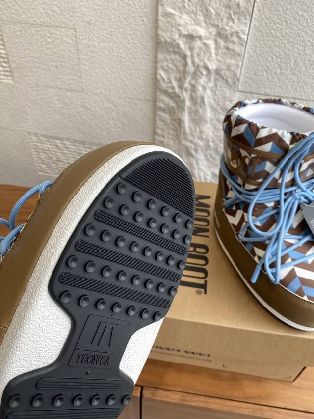 顶级版本: Moon Boot 2025 秋冬爆款 男女同款 Icon Optical 高帮 低帮 雪地靴 Moon Boot当季甄选Icon Optical低帮雪地靴,海棉材质将脚部全面包裹,防水泼溅,男女同款,没有左右对错之分,标志拼接印花,鞋体饰有银色金属鞋眼,套穿款式搭配抽绳封口,装饰性交叉圆管鞋带,均塑中底,带Pvc跟部支撑和装饰,橡胶鞋底防滑,鞋底独特吸盘,强劲抓地,提供稳定性能。 面料:原版定制 牛皮 高丝光防水布 内里:原版100%丝绵内胆 垫脚:原版100%丝绵内胆 大底:原版开模热塑性