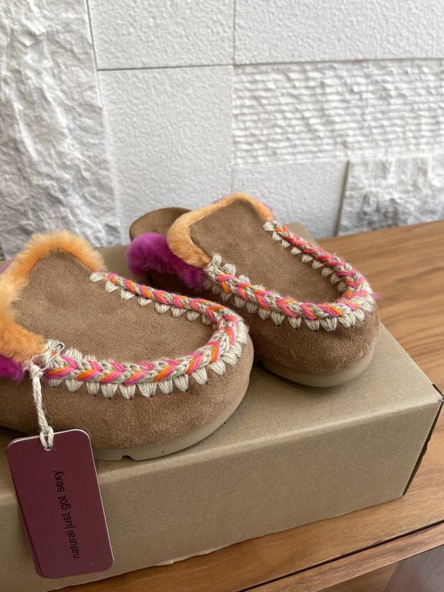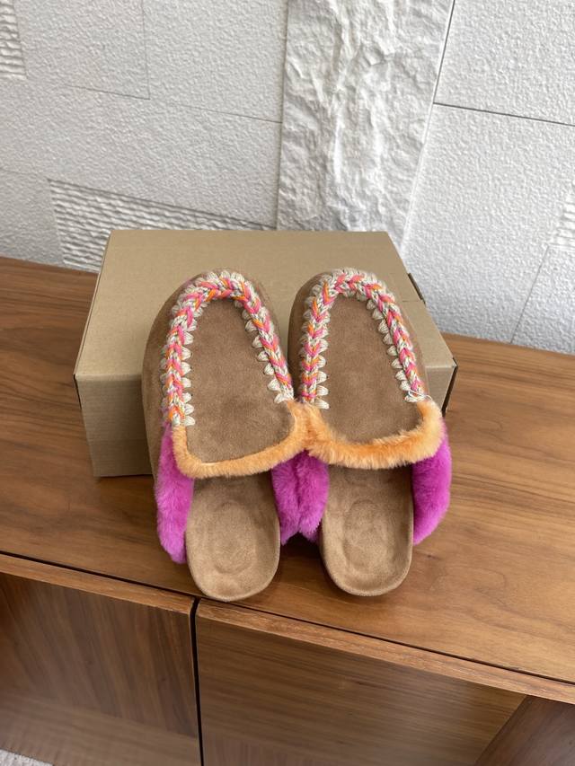 顶级版本: Mou 小众潮牌 2025 秋冬新款 撞色暖感后空 毛毛拖鞋 Mou暖感后空 鞋系列Winter Bio潮流手工缝线便鞋,鞋面采用奢华绒面和柔软浓密的羊皮毛,精心制作。配有Mou标志性的手工钩编羊毛缝线。浓密厚实的羊毛温暖包裹整个脚掌。轻便的Eva鞋底使这款鞋穿着舒适。 面料:进口牛反绒 内里:进口羊皮毛一体 大底:原版Eva发泡大底 Size:35-41 40 41定做不退换