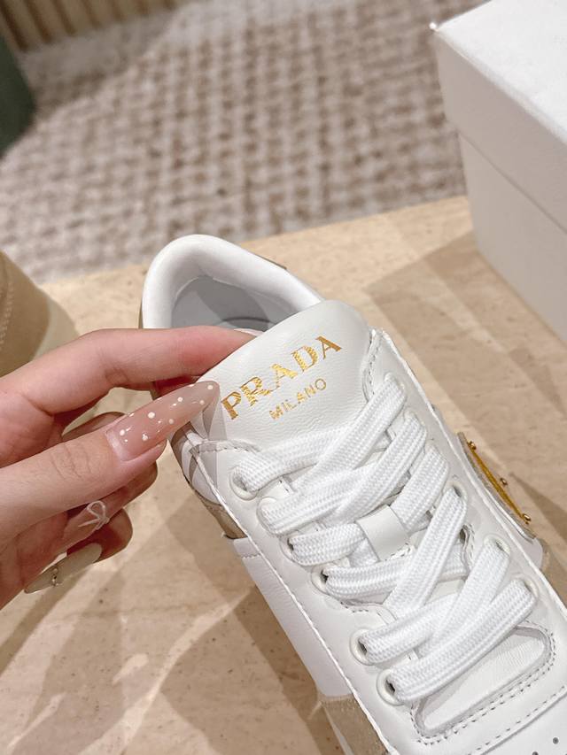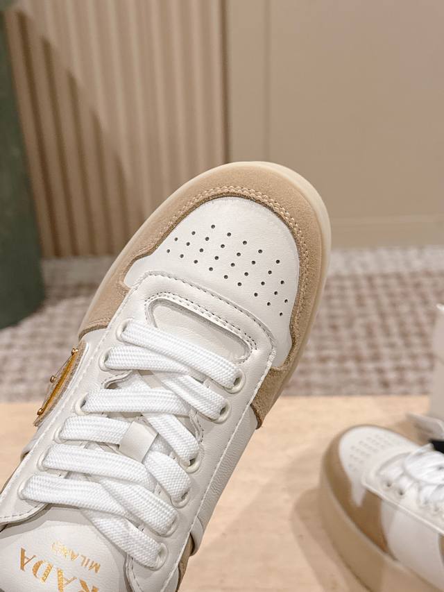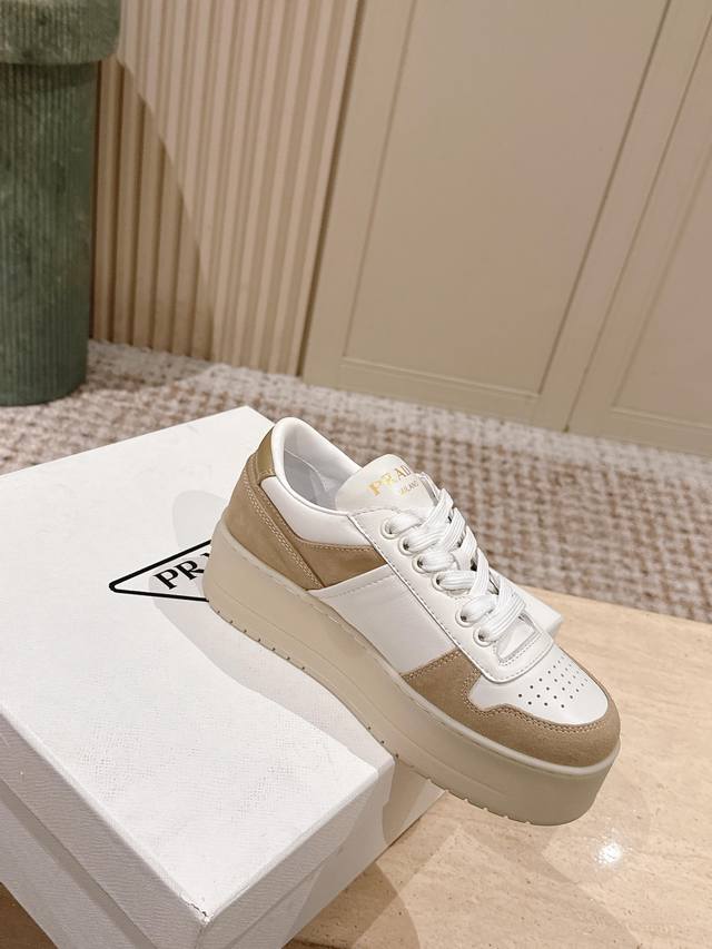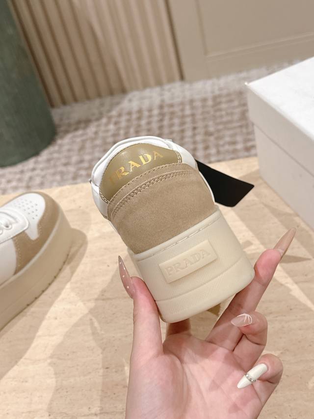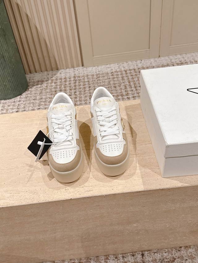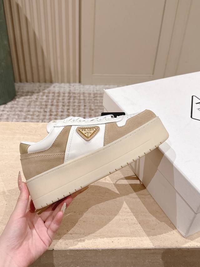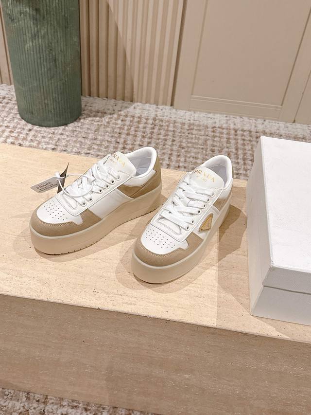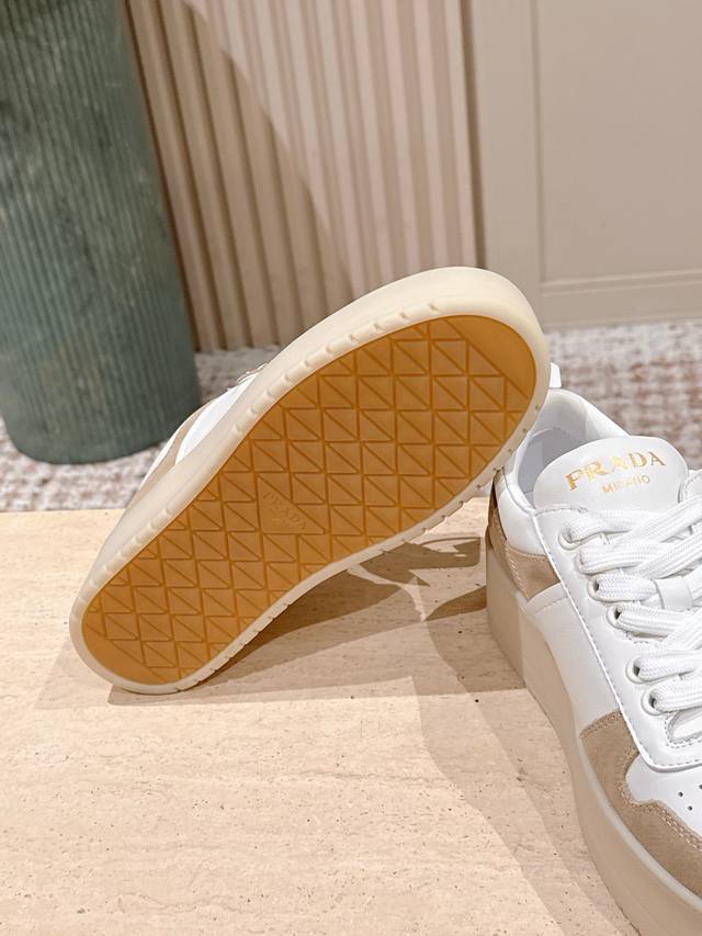 / 顶级版本: :prad* 25Ss p家25春夏厚底小白鞋 德训风格 麂皮和光面皮拼接撞色,细节感跟好 三角标点缀,简单高级!关键上脚超显腿长,轻松拉长腿部显腿