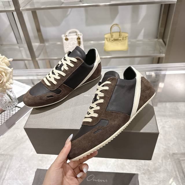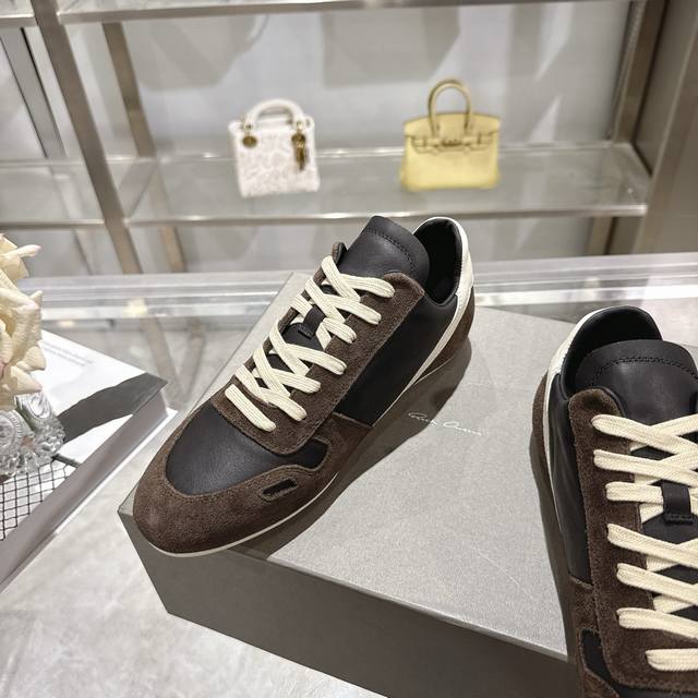 / 顶级版本 Rick Owens 26Ss 新品德训鞋代购级别高版本Rick Owens 瑞克 欧文斯全粒面小牛皮复古运动鞋休闲 暗黑系薄底 质感细腻,1:1还原