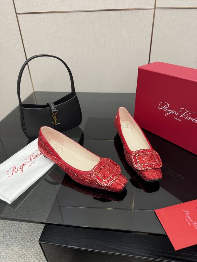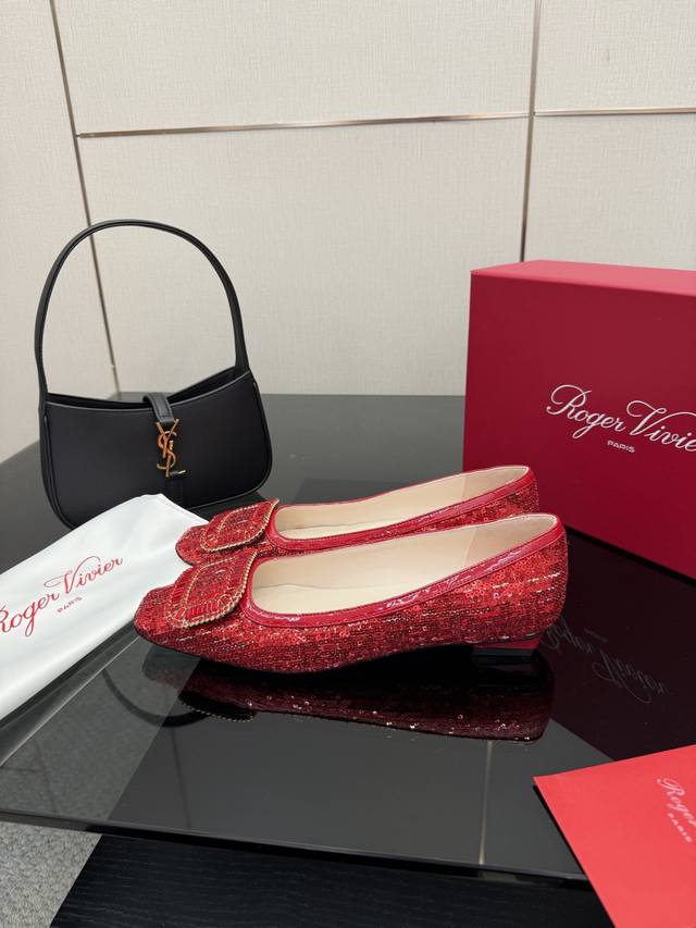 顶级版本 Roger Vivie*|Rv经典真丝水钻扣系列 原版定制鞋楦 版型超正 超显气质 真是越看越上头那种 什么神仙鞋也太美了吧! 完全仙女下凡闪闪亮真丝