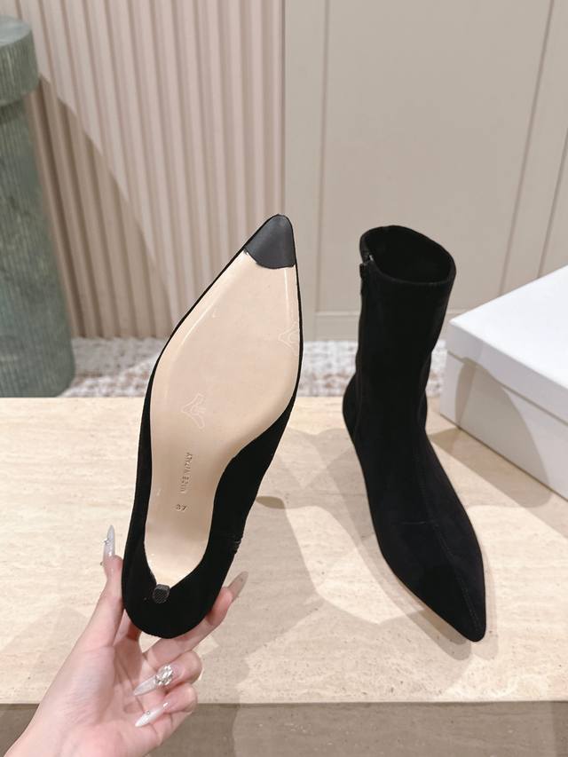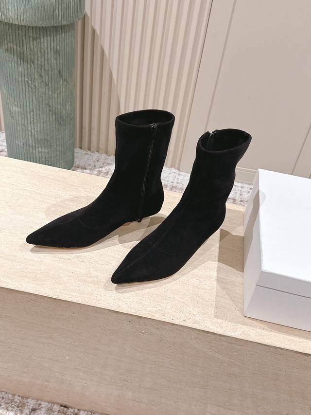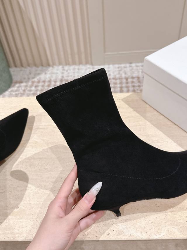 顶级版本: :The Ro* 真皮矮筒弹力骑士靴 DDD 采用上等真皮材质,质感柔软坚韧,触感佳且耐久性出色;高筒设计搭配弹力面料,能完美贴合腿部线条,同时给予小腿舒适包裹感。尖头造型时尚精致,可修饰脚部线条,让双脚更显修长;粗跟设计增加了靴子的稳定性,同时提升整体造型的时尚感与气场。 DDD 搭配紧身牛仔裤与简约上衣,展现帅气干练的风格。配上短裙与毛衣,凸显甜美可爱的气质。与长款连衣裙或大衣组合,散发出优雅迷人的韵味。 DDD 鞋面:弹力pu DDD 内里:羊皮 DDD 大底:真皮大底 DDD Size