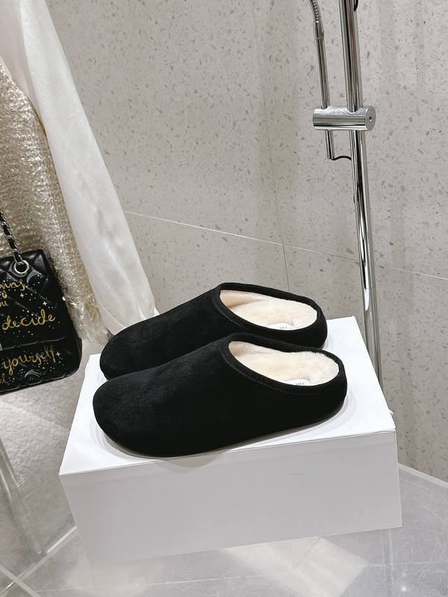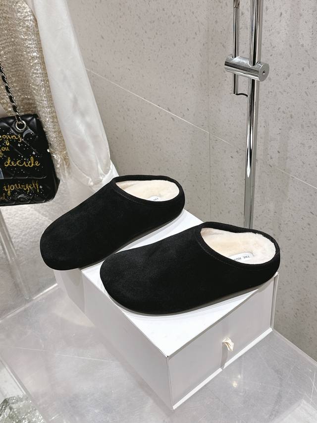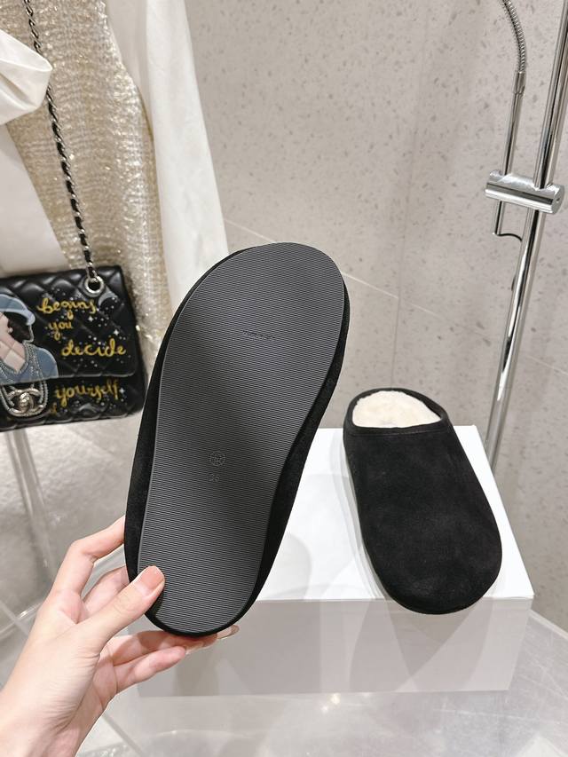 顶级版本 The Row 新款包头毛毛拖鞋 半拖 勃肯拖 进口牛猄面料 内里垫脚羊毛 原版开模大底 码数:35-40 40定做