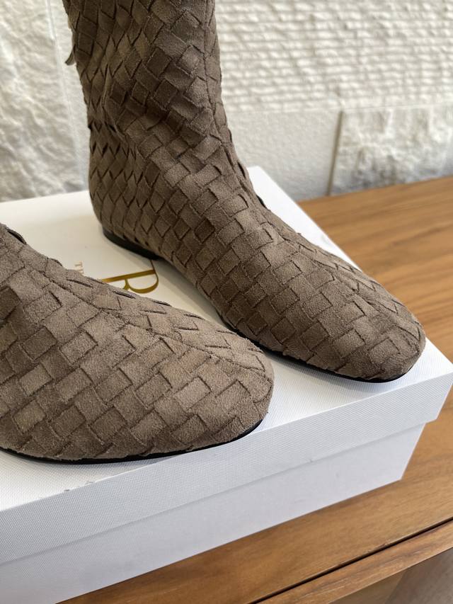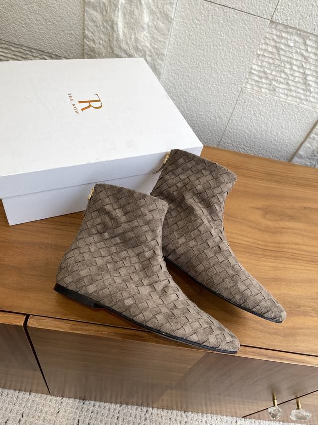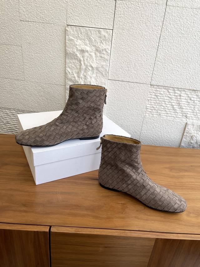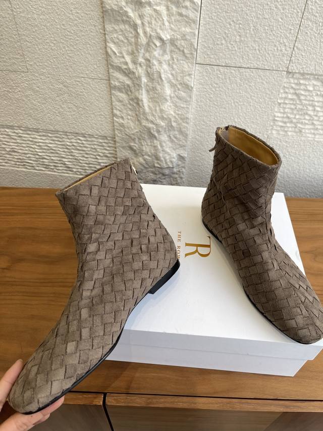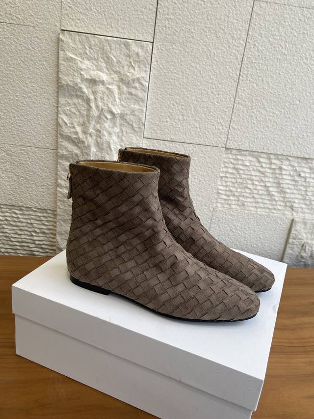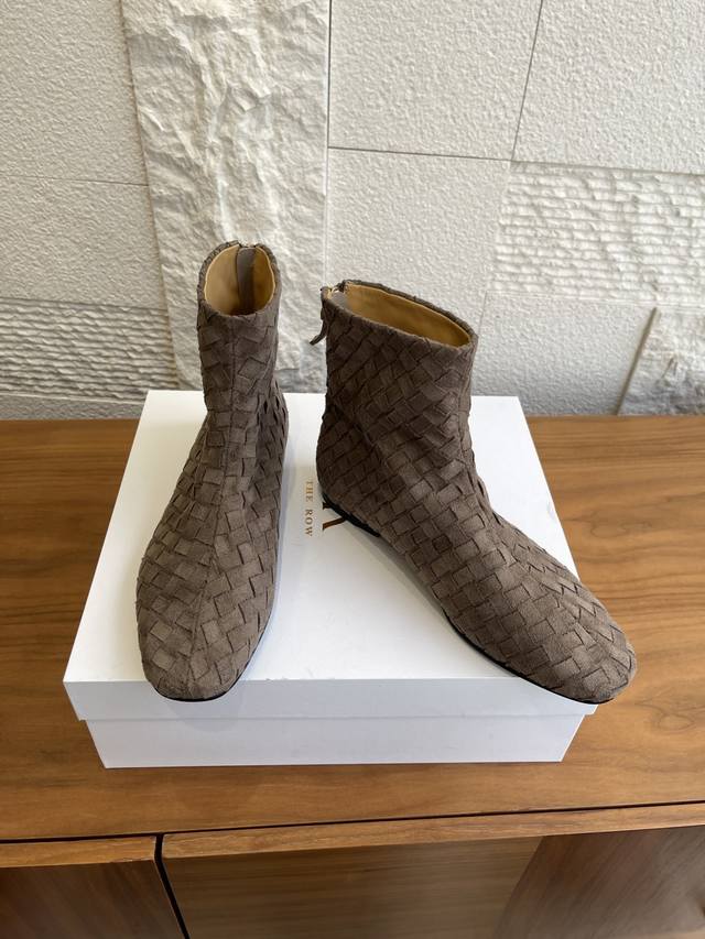 顶级版本: The Row 2025 秋冬新款 手工编织面 后拉链 平底 短靴 The Row这款短靴采用麂皮编织工艺,细腻纹理+复古质感,低调高级感满满!圆头设计不挤脚,适合多种脚型,内里羊皮柔软亲肤,穿着超舒适。橡胶鞋底防滑耐磨,日常通勤、逛街都Ok。麂皮棕色百搭,裙装牛仔裤都能轻松驾驭,秋冬穿搭必备!鞋型简约优雅,兼具设计感与实用性,是秋冬鞋柜里的质感担当~ 面料:进口麂皮手工编织面 内里:进口牛皮 大底:意大利进口真皮大底注塑橡胶 Size:35-41 40 41定做不退换