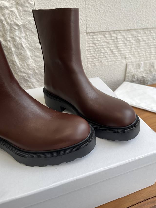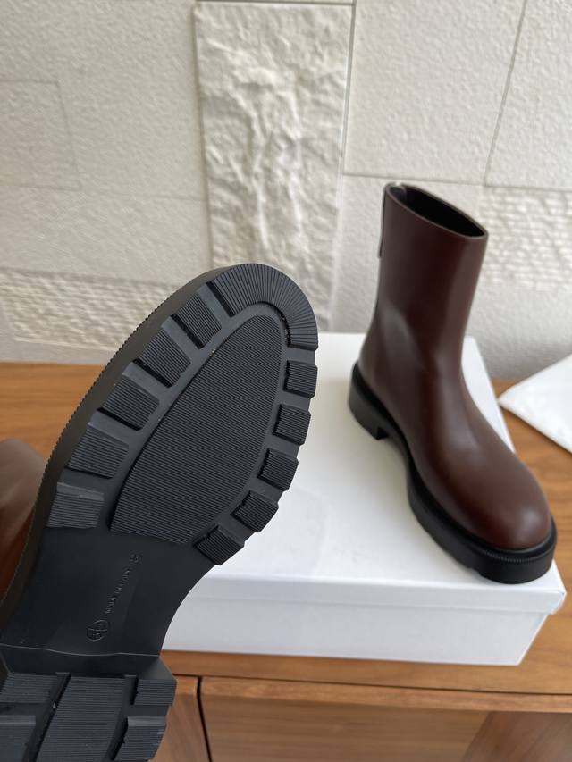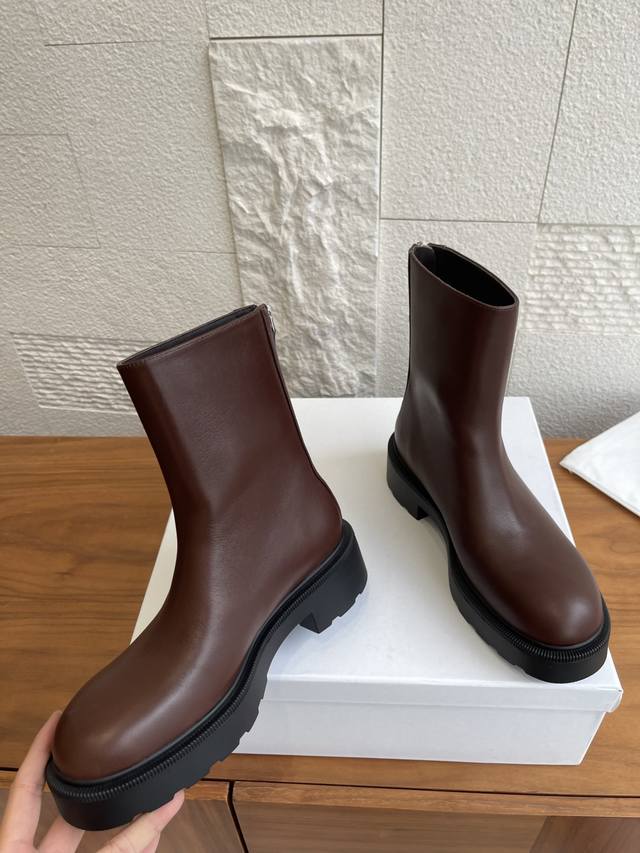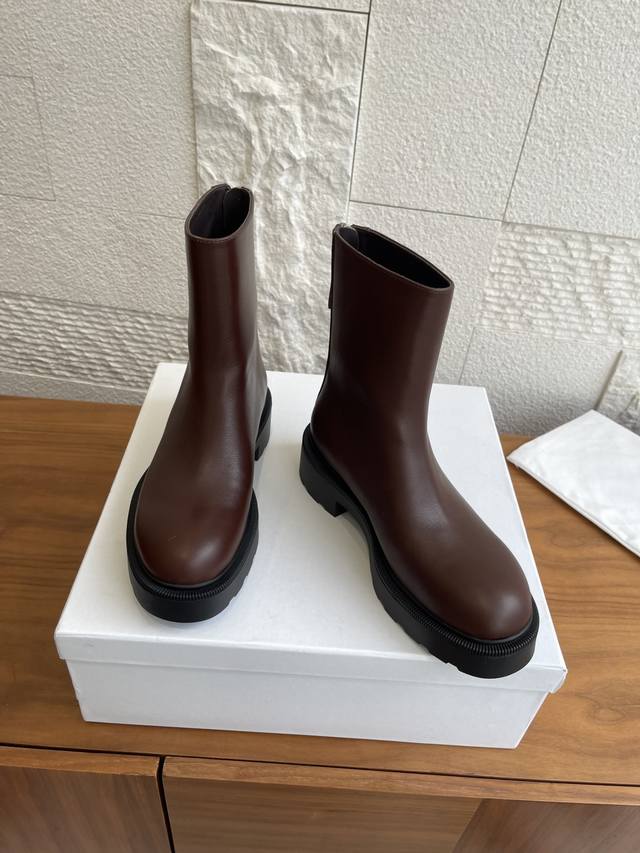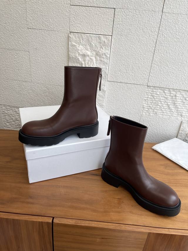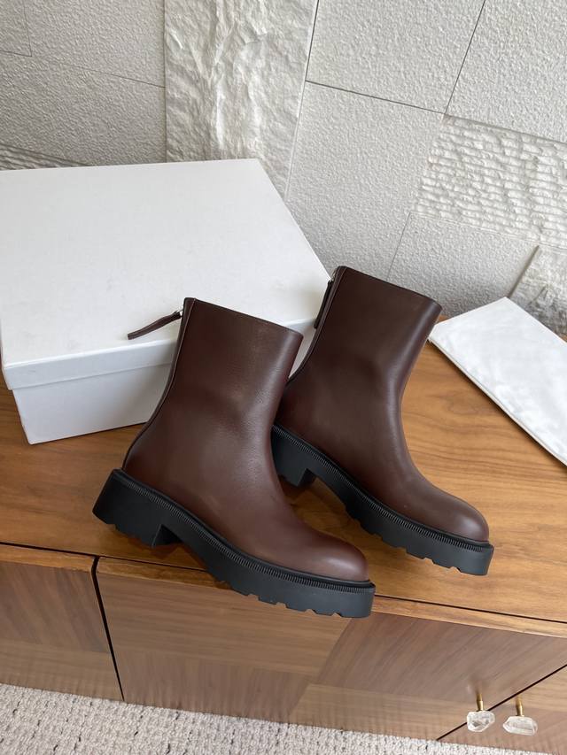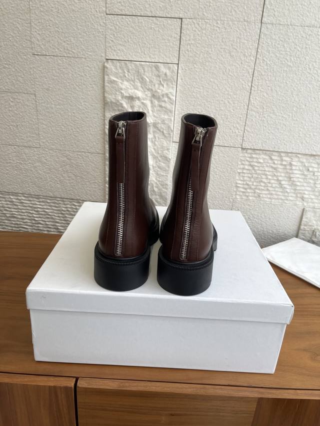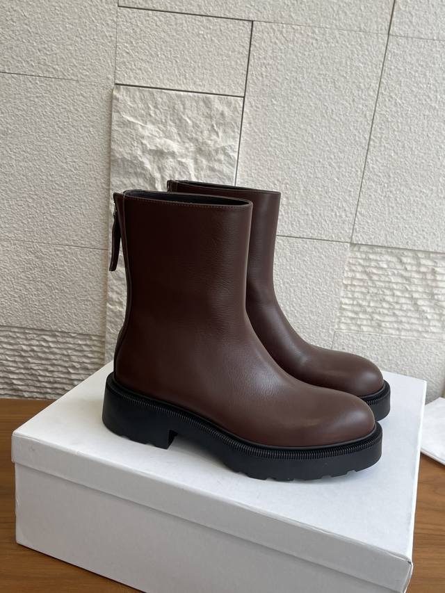 顶级版本: The Row 25Ss 秋冬新款 圆头 厚底 后拉链 切尔西 短靴 The Row这款时尚厚底短靴,简约大气,圆厚的鞋头设计,有着时髦的利落感,贴