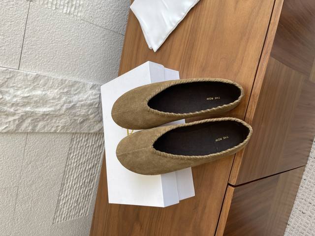 顶级版本: The Row 25Ss 秋冬新款 复古极简 圆头 平底 芭蕾舞鞋 休闲单鞋 Therow新款芭蕾单鞋,这简直就是一款让人无法抗拒的时尚宝藏单品,散发着迷人的香气,让人一眼就爱上,绝对是每个时尚达人的必收之选!这款鞋子不仅是品牌的经典之作,更因其稀有性和独特魅力,成为了众多时尚爱好者心中的白月光。即使看过无数知名博主的强烈推荐,也依然让人难以轻易入手。它的版型优雅流畅,皮质细腻高级,脚感更是达到了极致的舒适,每一个细节都让人爱不释手,仿佛是为你的双脚量身定制 面料: 进口麂皮 内里 脚垫: 进