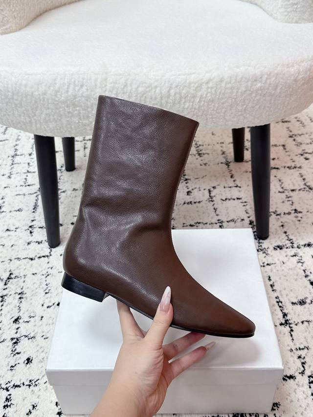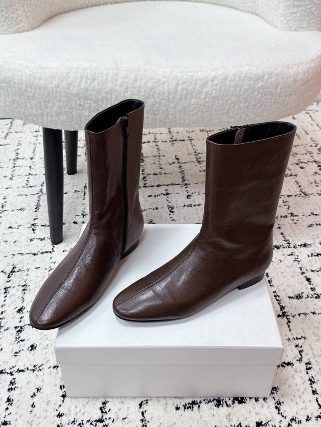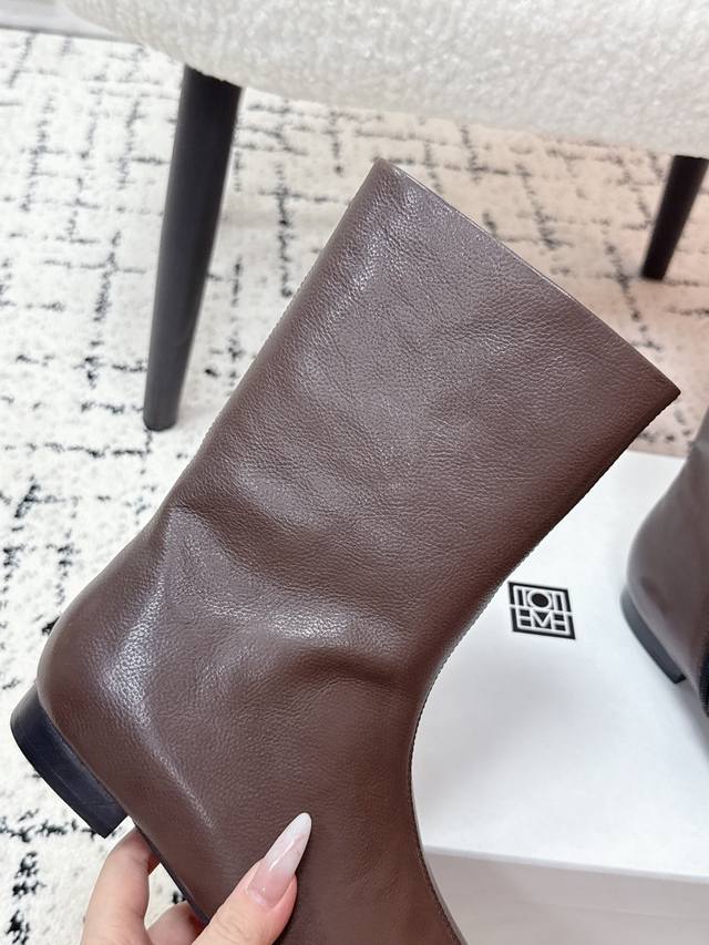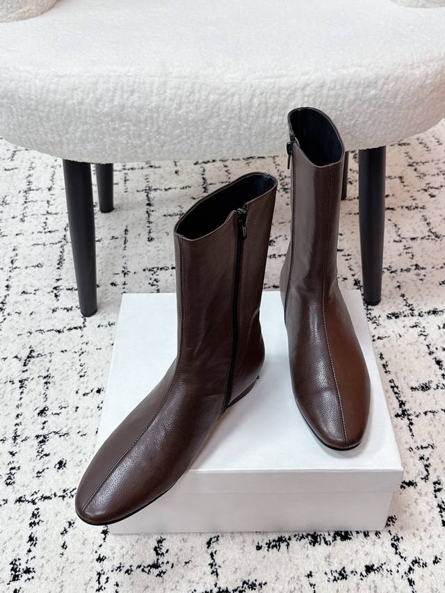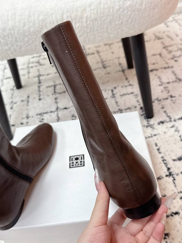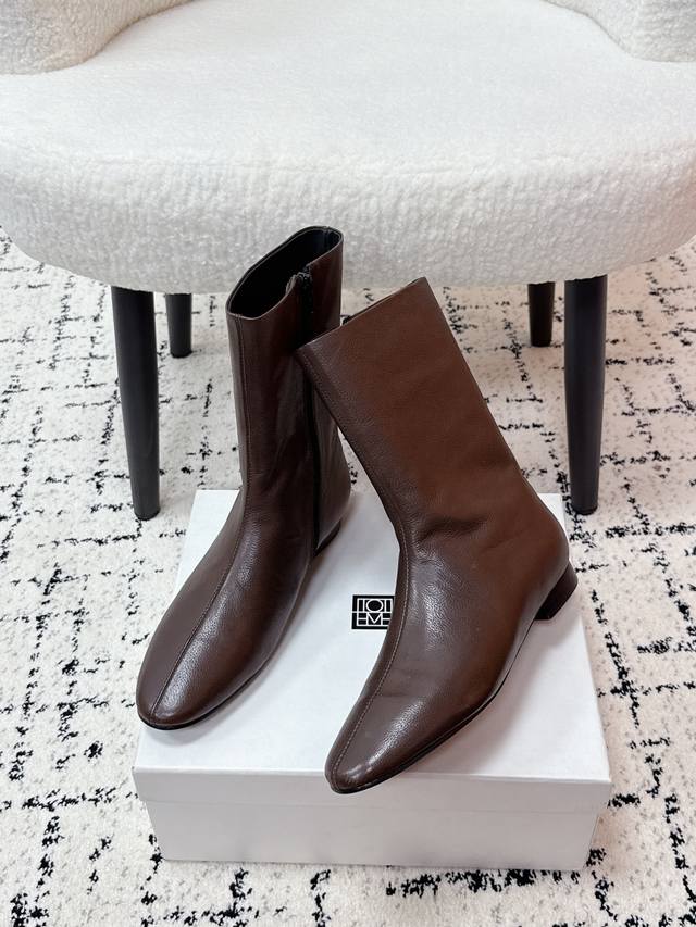 顶级版本 DDD Toteme潮牌 25 秋冬新款 简易 圆头平底 侧拉链 短靴 DDD 这双黑色圆头骑士靴采用柔软皮革,表面光滑细腻,简约又时髦!靴筒高度适中,拉链设计超方便穿脱,秋冬季节必备。通勤休闲都能轻松驾驭。圆头设计让脚部空间更宽敞,走路不挤脚,搭裙装裤装都很百搭,轻松切换多种风格!。 DDD 超级吸睛,盐甜,极简风还得是Toteme 简约却丝毫不平庸,优雅法式轻松拿捏 DDD 鞋面 : 荔枝纹小牛皮 DDD 内里 : 羊皮 DDD 大底 : 意大利进口真皮大底 DDD Size : #35-4