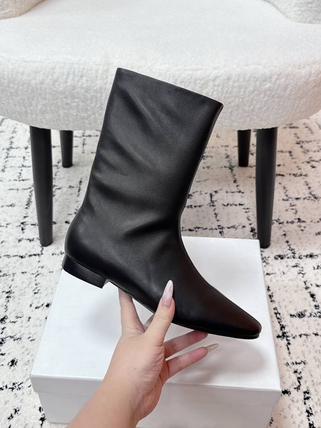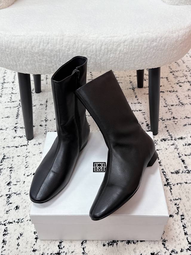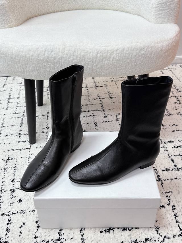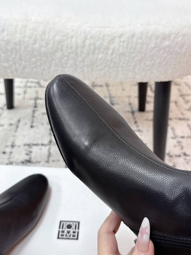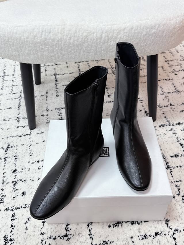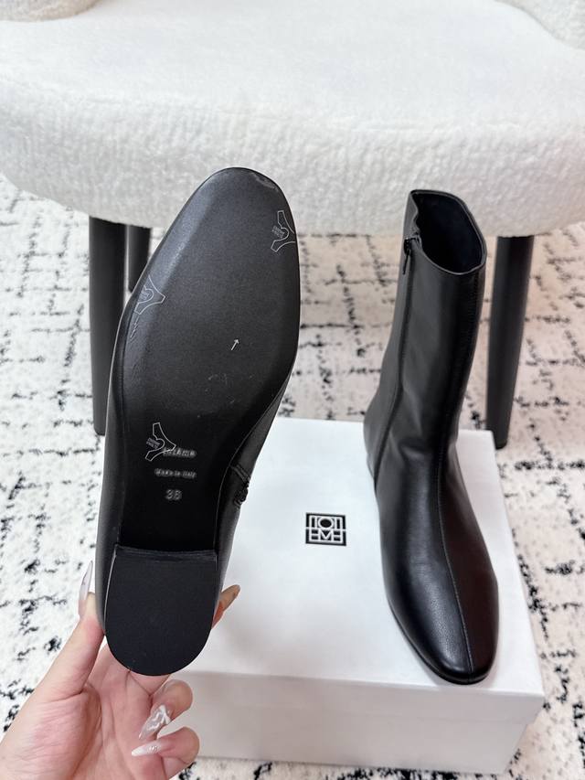 顶级版本 DDD Toteme潮牌 25 秋冬新款 简易 圆头平底 侧拉链 短靴 DDD 这双黑色圆头骑士靴采用柔软皮革,表面光滑细腻,简约又时髦!靴筒高度适中,拉链设计超方便穿脱,秋冬季节必备。通勤休闲都能轻松驾驭。圆头设计让脚部空间更宽敞,走路不挤脚,搭裙装裤装都很百搭,轻松切换多种风格!。 DDD 超级吸睛,盐甜,极简风还得是Toteme 简约却丝毫不平庸,优雅法式轻松拿捏 DDD 鞋面 : 荔枝纹小牛皮 DDD 内里 : 羊皮 DDD 大底 : 意大利进口真皮大底 DDD Size : #35-4