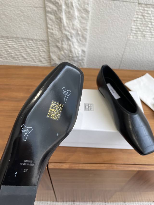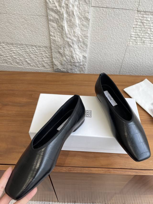 / 顶级版本: Toteme 25Ss 秋冬新款 简约设计 方头 平底 芭蕾舞鞋 Toteme 芭蕾平底鞋散发简约随性风格。选用鳄鱼纹压花重新演绎,搭配皮革衬里,随