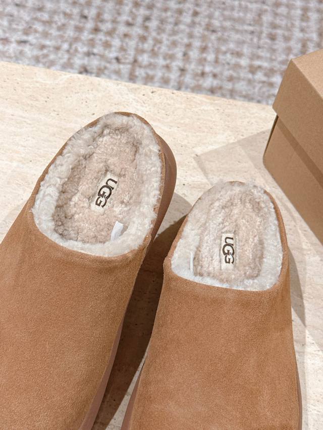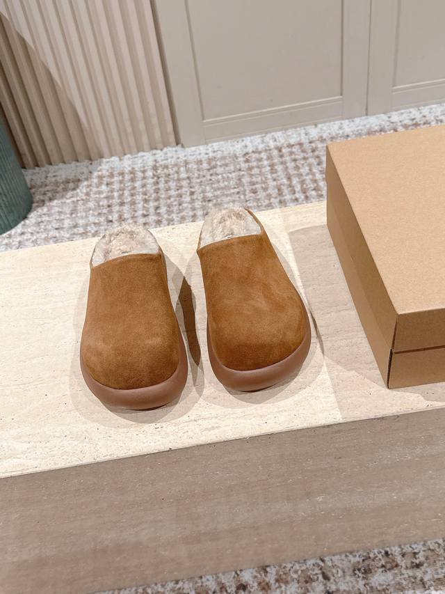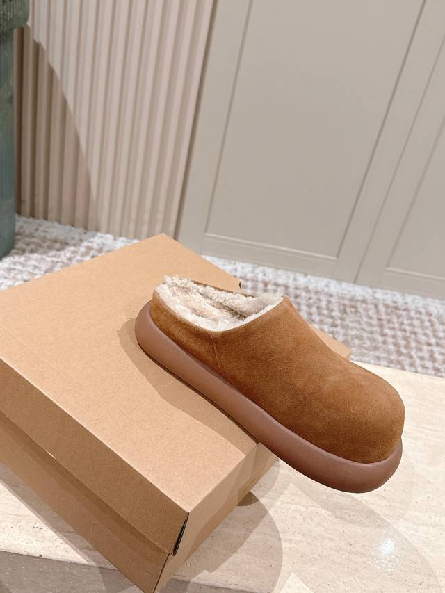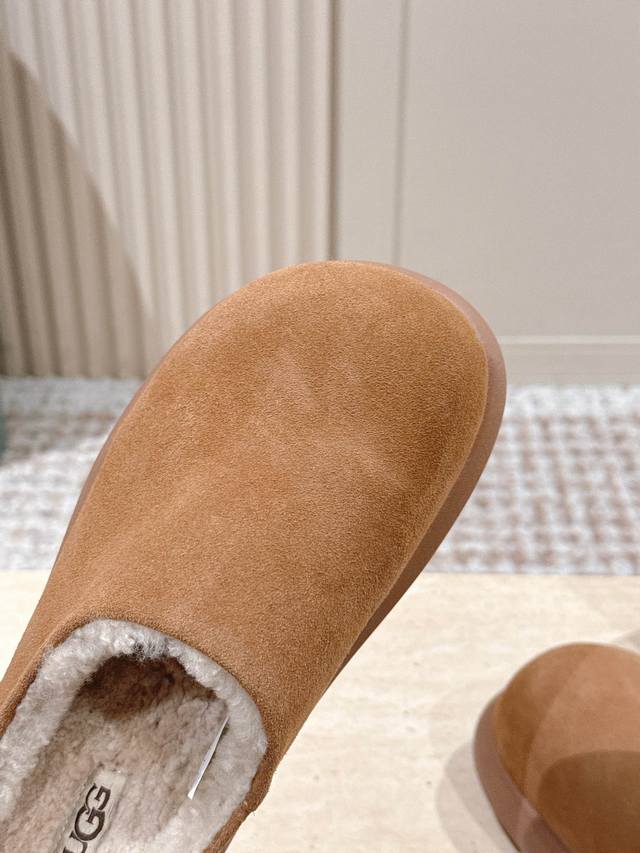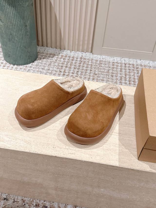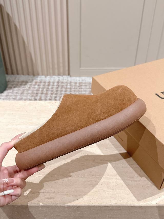 顶级版本: :Ug*秋冬新款圆头加绒穆勒拖鞋 DDD 鞋面采用反绒皮材质,触感柔软且质感高级;鞋内填充厚实羊毛内衬,紧密锁温,能在秋冬季节提供充足的保暖效果,贴合脚部肌肤时温暖舒适。 DDD 属于穆勒拖款式,无后跟的开放式设计,穿脱极其便捷;鞋型圆润饱满,视觉上简约大气,兼具居家与轻外出的实用性。提供多组低饱和度大地色系,色调柔和百搭,易与各类秋冬服饰搭配,满足不同风格的穿搭需求。 DDD 鞋面:高丝光牛绒 DDD 内里:隆丰A级皮毛一体 DDD 大底:Eva发泡大底 DDD 增高:4.5Cm DDD S