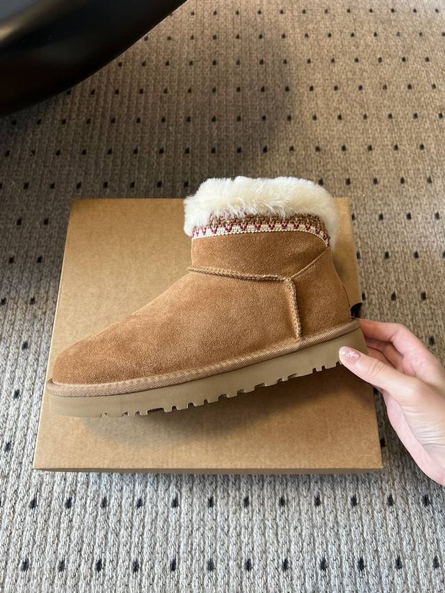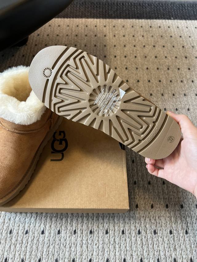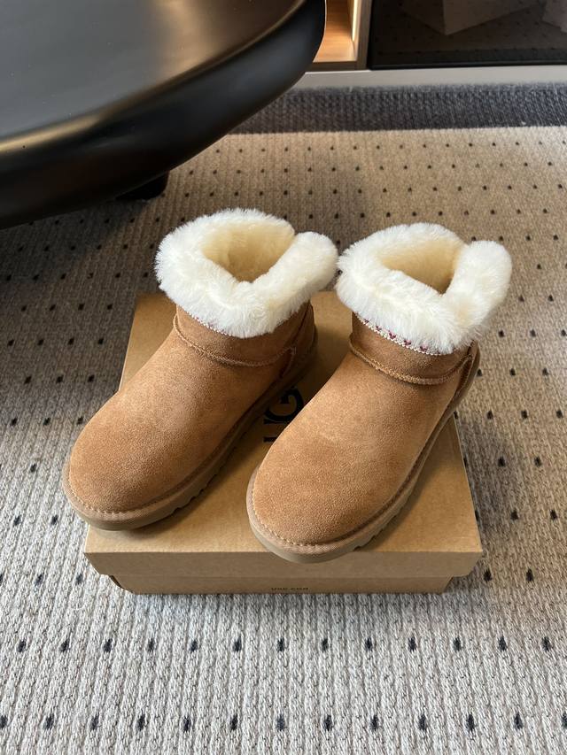 顶级版本 Ugg反绒皮平底保暖毛绒雪地短靴 采用优质反绒皮面料,搭配内里的羊毛材质,既保证了质感,又能在冬季提供良好的保暖性。短筒款式,简约大方,鞋口的毛绒设计不仅提升了保暖性,还增加了时尚感,整体风格百搭且具有辨识度。 可搭配牛仔裤,无论是直筒牛仔裤还是紧身牛仔裤都很合适,再搭配一件宽松的卫衣或毛衣,打造随性舒适的日常造型。搭配同色系或基础色的打底裤与长款羽绒服,整体造型简约大方,适合日常出行。 鞋面:牛反绒 内里:羊毛 大底:Eva发泡底 Size:35-40