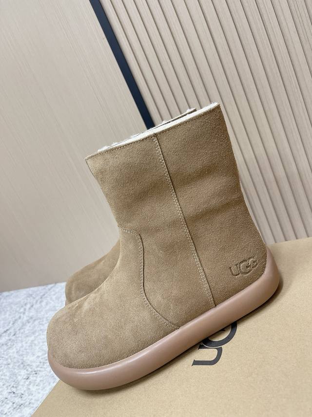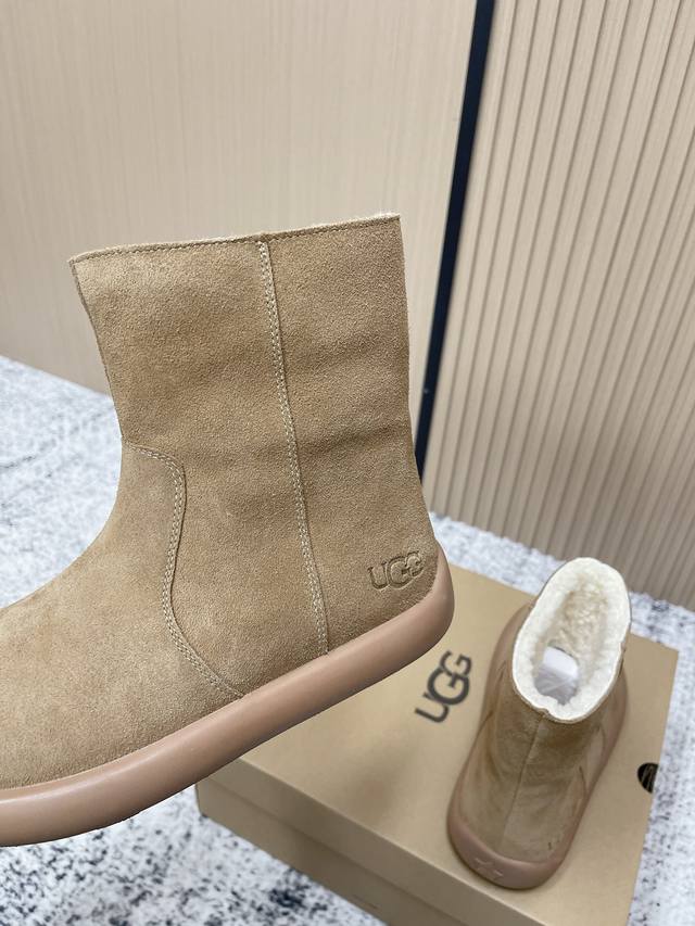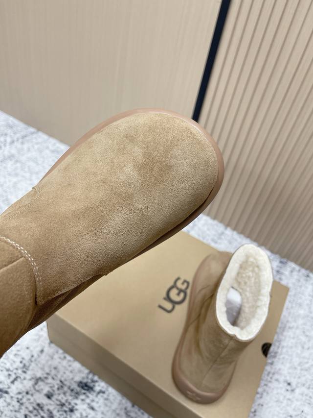 顶级版本: Ugg秋冬最款新厚底雪地靴 超多明星网红种草 秋冬必备毛毛鞋 真羊毛上脚超暖和 一款不会撞衫的鞋子 简约的隔板设计 细节处Logo点缀高级感满满 无