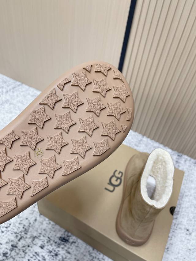 / 顶级版本: Ugg秋冬最款新厚底雪地靴 超多明星网红种草 秋冬必备毛毛鞋 真羊毛上脚超暖和 一款不会撞衫的鞋子 简约的隔板设计 细节处Logo点缀高级感满满 无