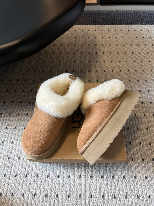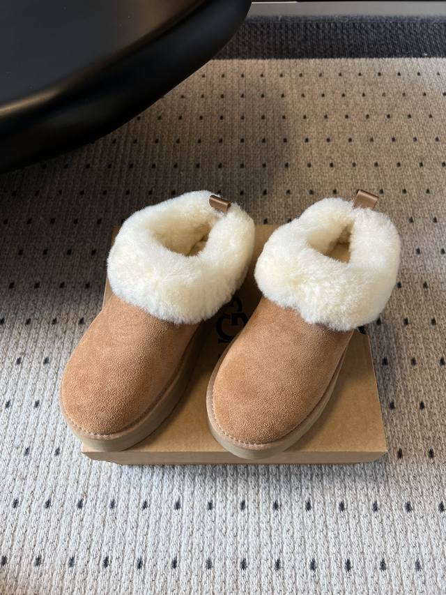 顶级版本 Ugg秋季圆头厚底茸茸毛鞋 茸茸的鞋领软乎乎的,贴脚脖子舒服厚底设计穿上显高显腿长,这款Ugg懒人毛毛鞋圆头造型很可爱,平时配裤子,裙子都可以最关键是
