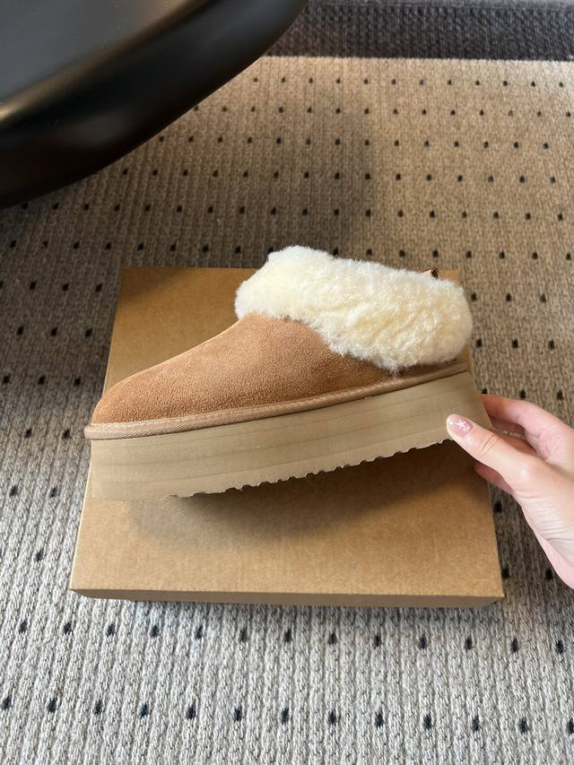 顶级版本 Ugg秋季圆头厚底茸茸毛鞋 茸茸的鞋领软乎乎的,贴脚脖子舒服厚底设计穿上显高显腿长,这款Ugg懒人毛毛鞋圆头造型很可爱,平时配裤子,裙子都可以最关键是“懒人友好’,一脚蹬就能出门,走路也稳。 毛绒厚实柔软,上脚软糯舒服,搭配一双普通的袜子,都很好看,氛围感拉满。实物和图片一样好看,栗色的麂皮材质很有质感,毛毛又软又厚实,穿着柔软又舒服。 鞋面:牛反绒 内里:羊毛 大底:Eva发泡底 Size:35-40码