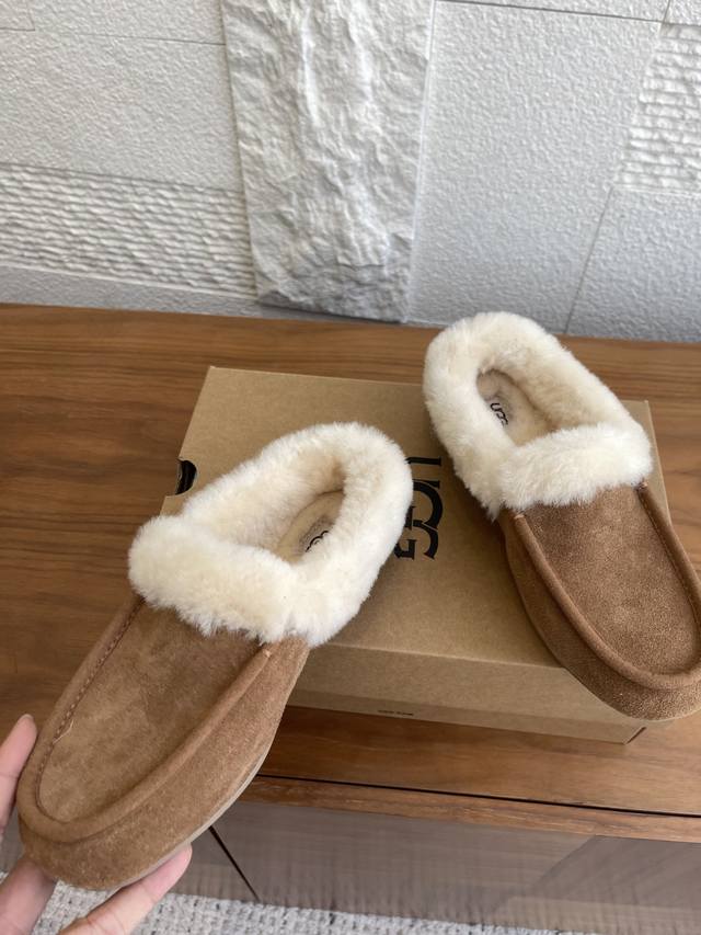 顶级版本: Ugg 2025 秋冬新款 Ansley Mule 安思丽穆勒鞋 一脚蹬 乐福鞋 经典翻毛牛皮,美式复古,搭配10毫米羊毛里衬,鞋内底,翻毛领,茸软舒适 后侧饰有Ugg经典热压花品牌徽标质感满满,轻盈橡胶薄底,防滑耐磨且舒适,半耄一脚蹬,解锁松弛脚感。 面料:原版定制进口头层牛皮 内里:原版定制保暖羊毛 大底:原版开模橡胶大底 Size:35-40 40定做不退换