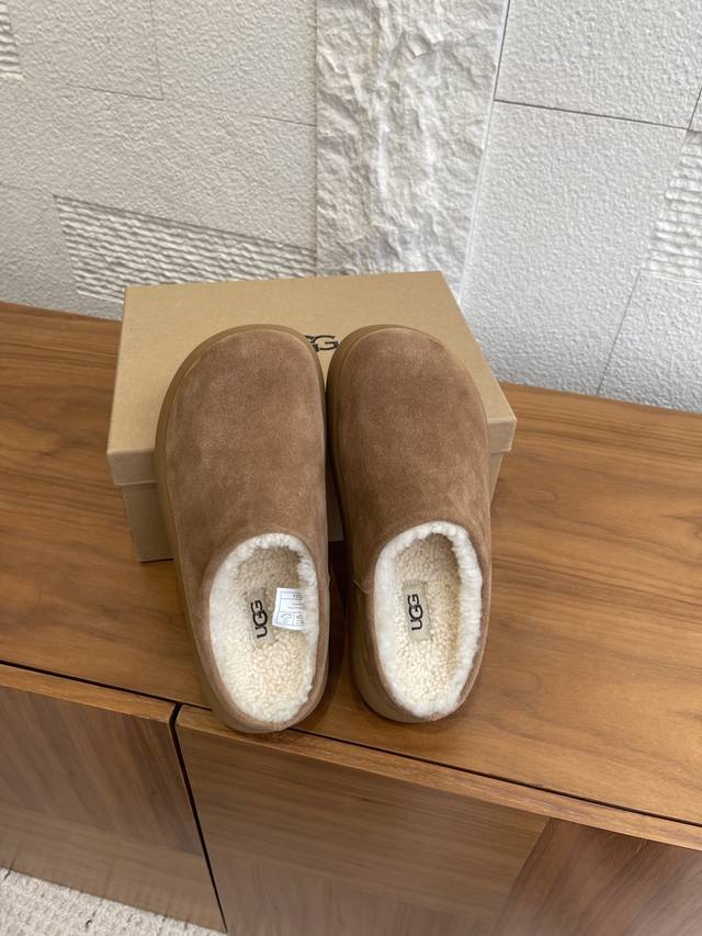 顶级版本: Ugg 2025 秋季新款 大头 厚底 小土豆 勃肯鞋 懒人毛拖 Ugg这款厚底小土豆勃肯鞋,圆润包头+一脚蹬设计,超适合懒人穿搭!鞋面是高丝光绒牛