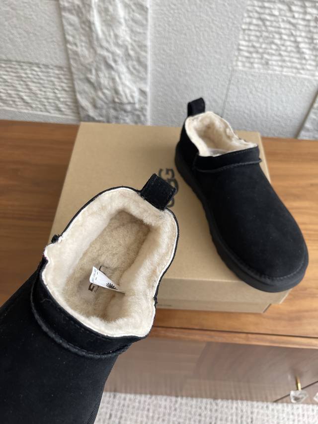 顶级版本: Ugg 25Ss 秋季新款 Classic Micro 经典超迷你 低帮薄皮 雪地靴 Ugg这款Classic Micro 经典超迷你雪地靴,明星同款,领口设计先高后低,低帮薄底,利落有型,鞋面采用牛剖头层皮革,约17亳米羊皮毛鞋面里衬和鞋垫,带来由内而外的舒适与温暖。 面料:防水牛反绒 内里 垫脚:真羊毛 大底:原版Eva大底 Size:35-41 40 41定做不退换