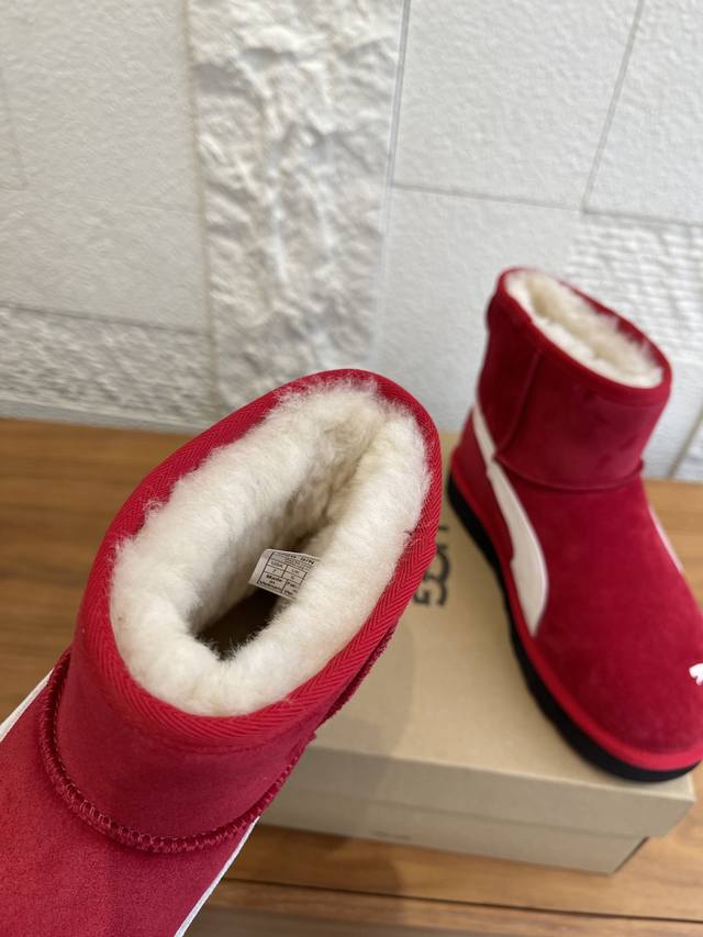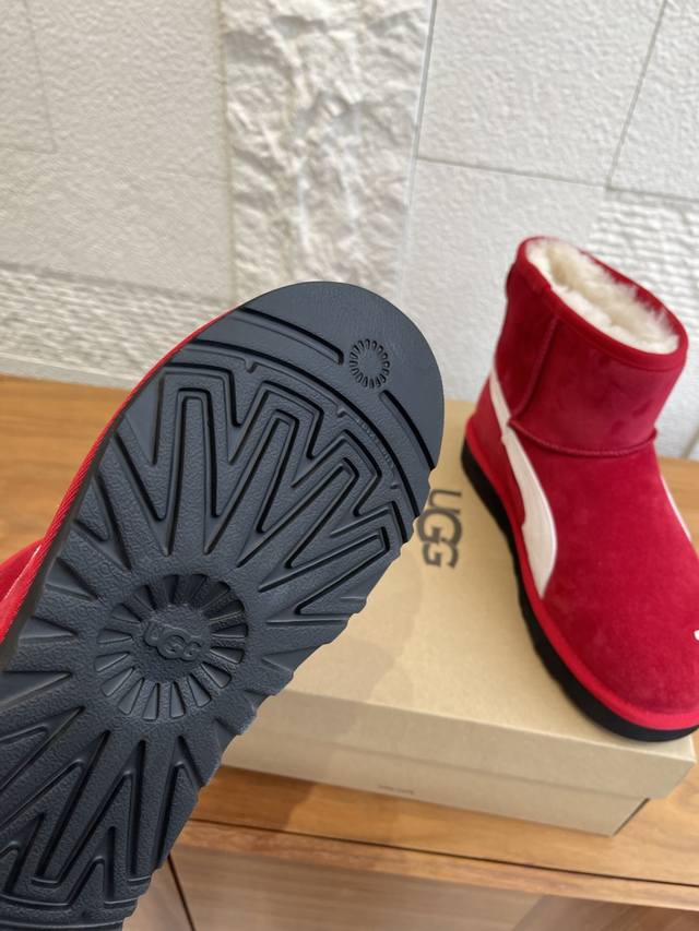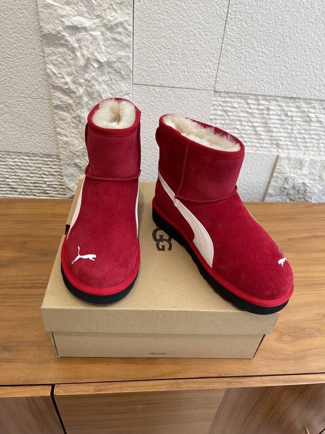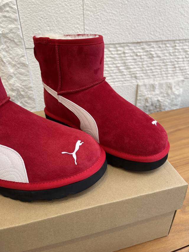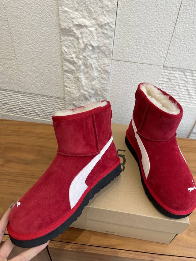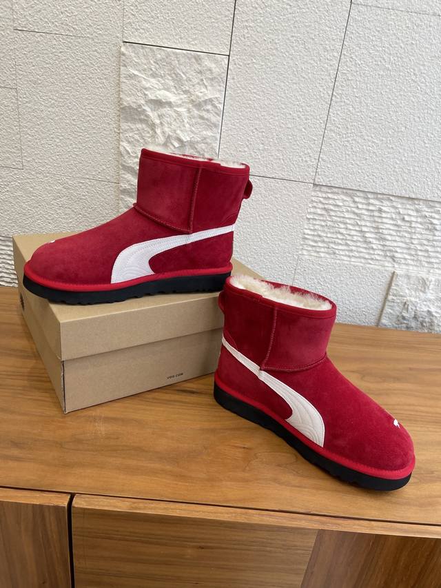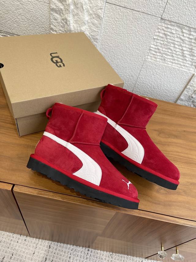 / 顶级版本: Ugg X puma 2025 秋冬新款 联名款雪地靴 Ugg 和puma联名雪地靴,红色翻毛皮+白色跑道设计,运动感满满又超保暖!内里定制羊毛,冬