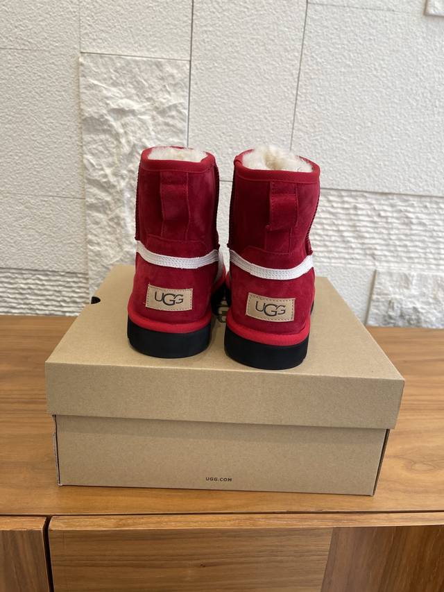顶级版本: Ugg X puma 2025 秋冬新款 联名款雪地靴 Ugg 和puma联名雪地靴,红色翻毛皮+白色跑道设计,运动感满满又超保暖!内里定制羊毛,冬