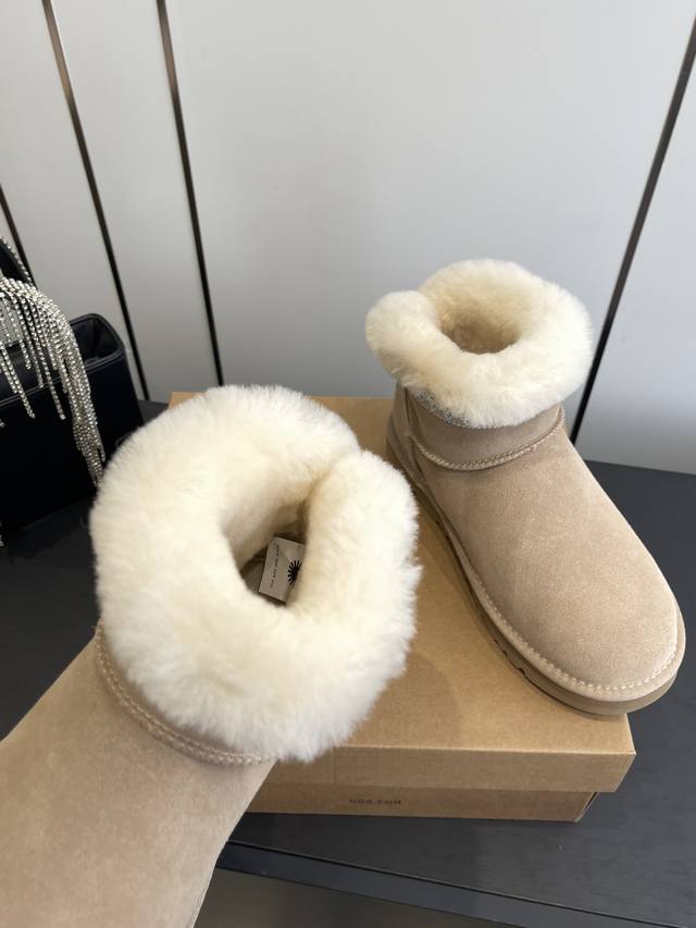 顶级版本 Ugg~25Vs秋冬爆款松糕厚底雪地靴系列 纯羊毛低帮雪地靴 一款不会撞衫的鞋子、简约的隔板设计上斑点的大底、鞋面真丝卷毛、秋冬季必备款、无论什么裤子