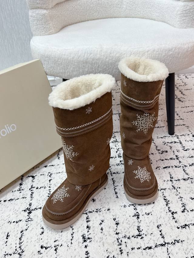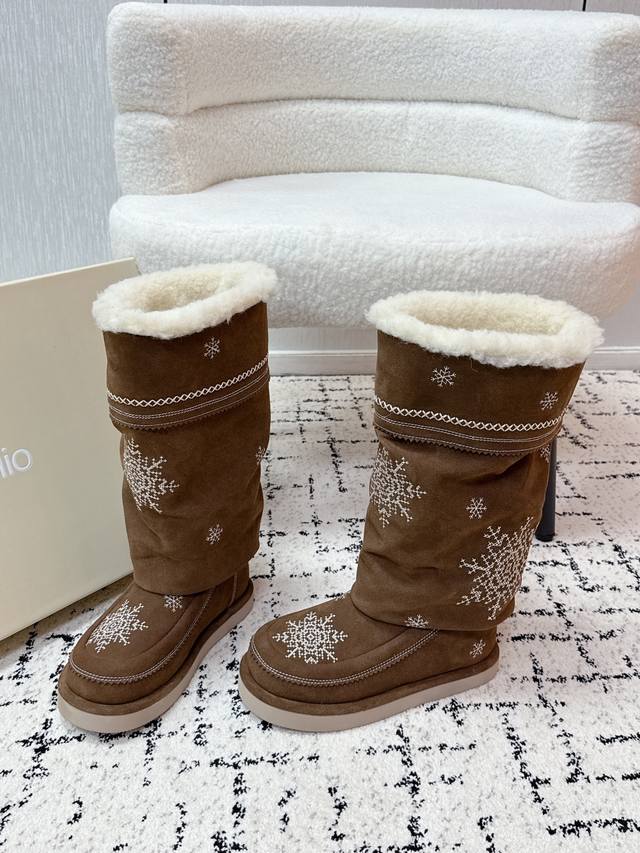 / 顶级版本 Unfolio 潮牌 25 冬季 最新 主推款 高筒 雪地靴 流苏设计 几万针刺绣雪花 图案 内里羊毛 小众设计师25发布会新款 面料 : 高丝光牛反