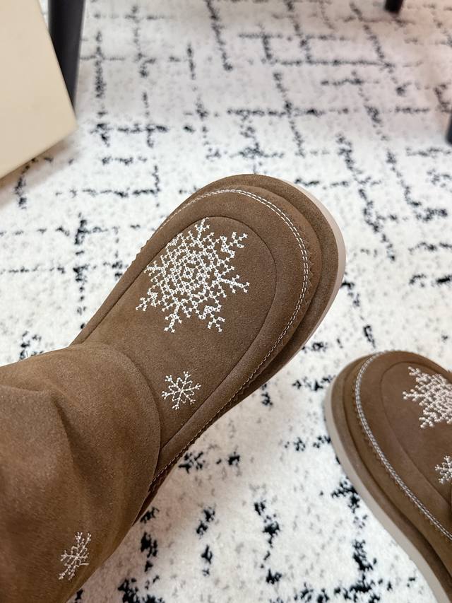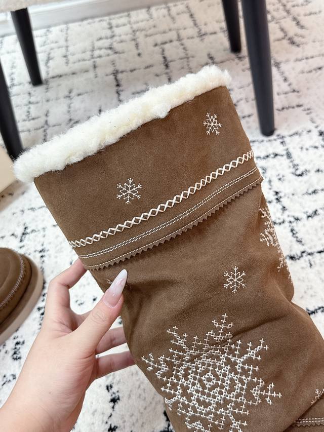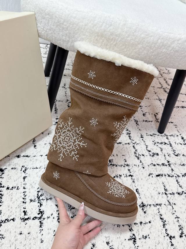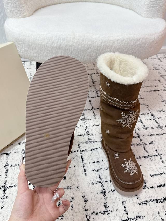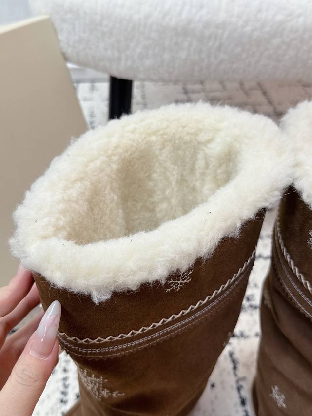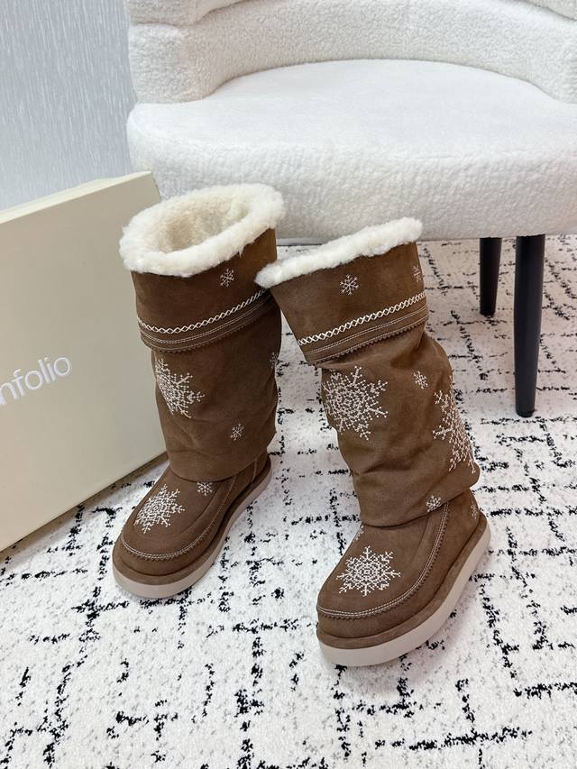顶级版本 Unfolio 潮牌 25 冬季 最新 主推款 高筒 雪地靴 流苏设计 几万针刺绣雪花 图案 内里羊毛 小众设计师25发布会新款 面料 : 高丝光牛反