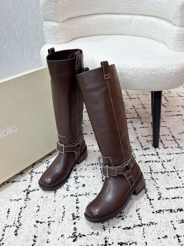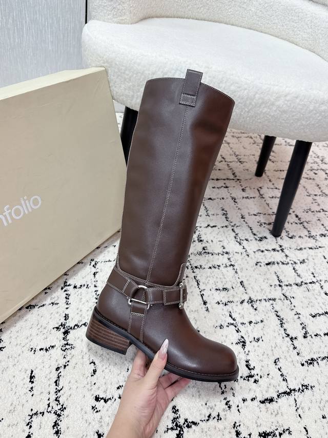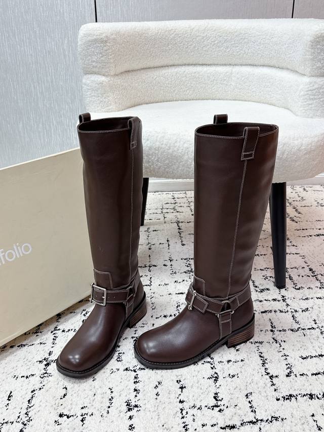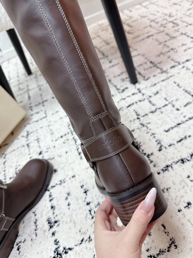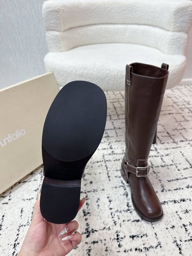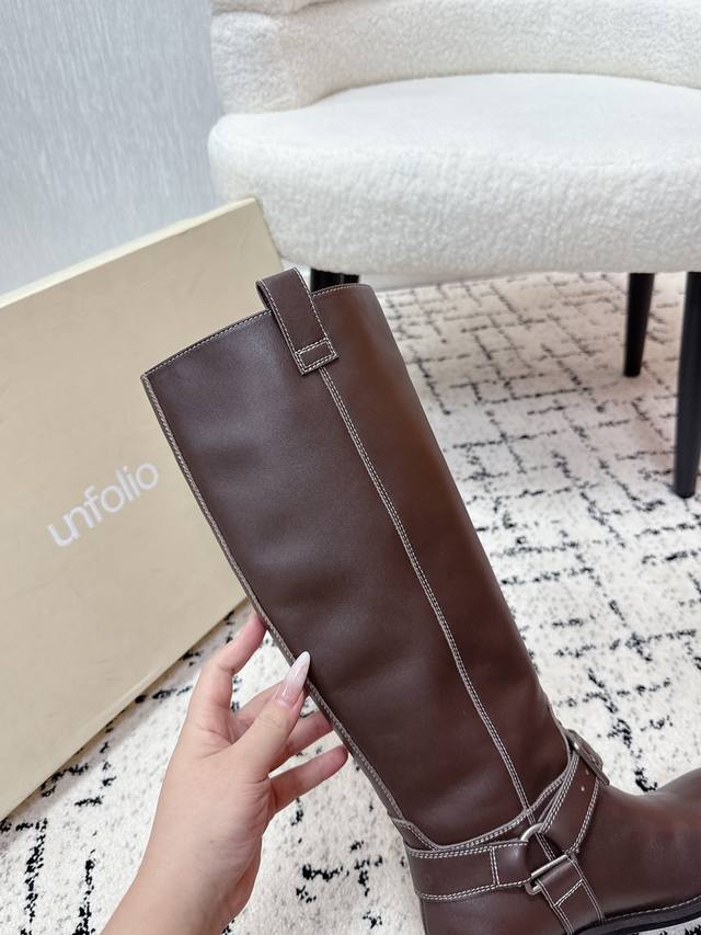 顶级版本 Unfolio 潮牌 25 秋冬复古新款 骑士 长靴 鞋身带有金属扣带设计,为整体造型增添了时尚感与设计感,同时也起到了装饰和固定靴筒的作用;不同颜色