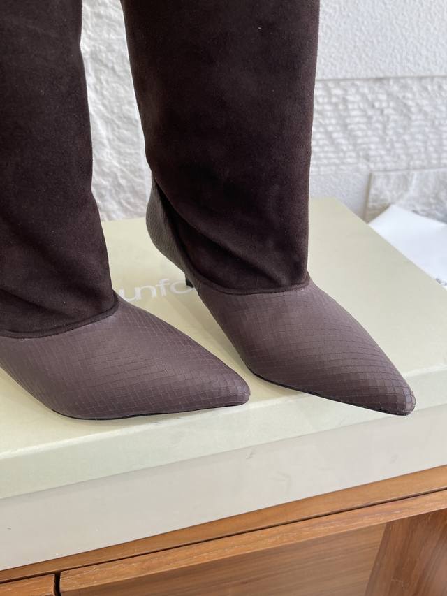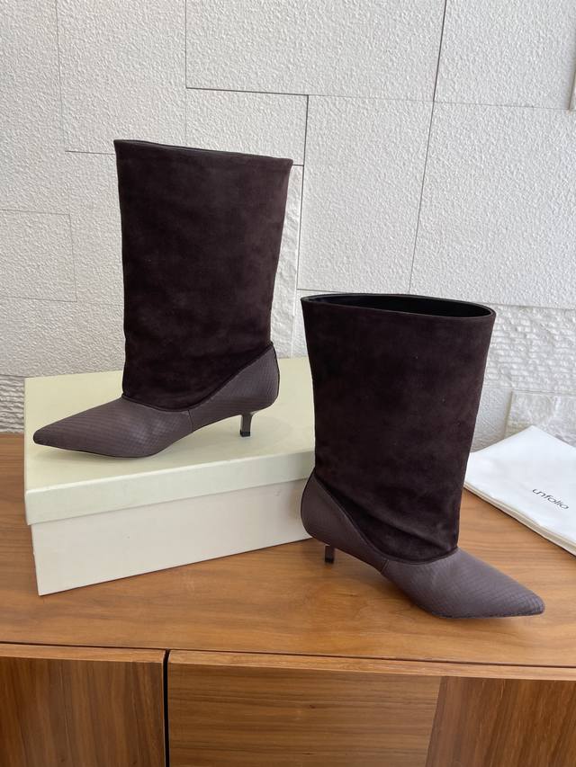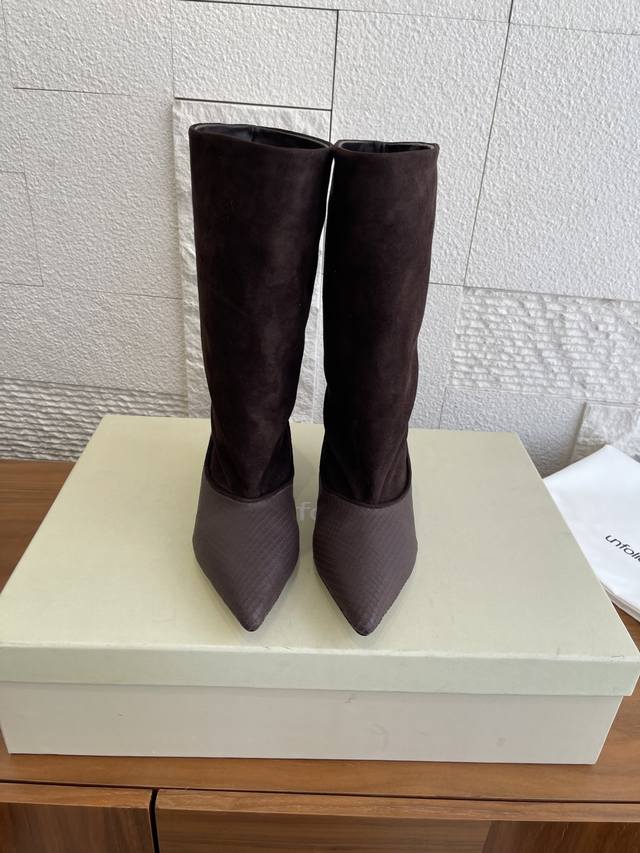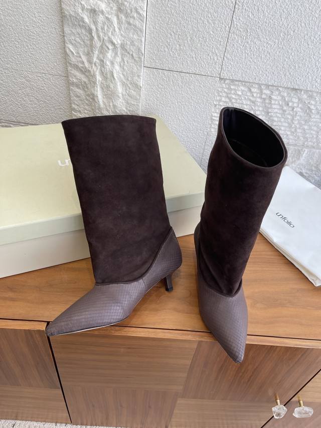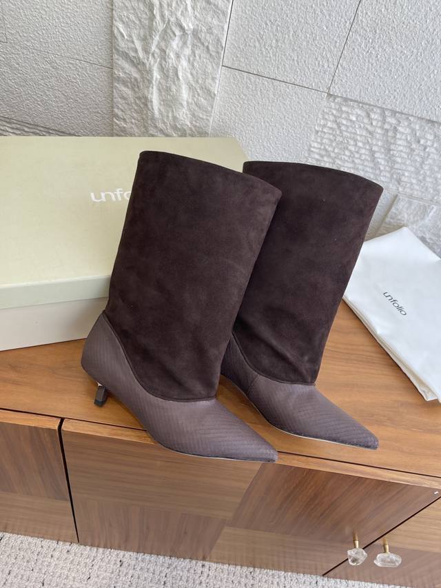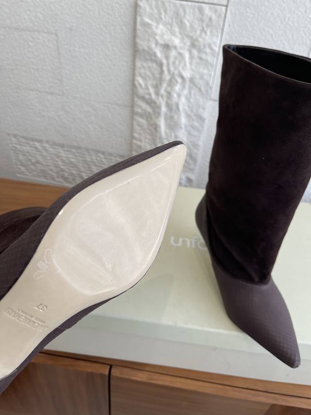 顶级版本: DDD Unfolio 2025 秋冬新款 尖头 拼接 小猫跟 直筒 短靴 DDD Unfolio这款尖头中筒靴,绒面革+皮革拼接,质感细腻又耐用!尖头设计拉长腿部线条,优雅又舒适,通勤约会都能轻松驾驭。中筒靴型修饰腿型,搭配裙装裤装都很出彩,法式复古氛围感拉满~秋冬季节百搭,实用又时髦,是衣橱必备单品! DDD 面料:进口牛皮 牛反绒 DDD 内里:进口羊皮 DDD 大底:意大利进口真皮大底 DDD Size:35-41 40 41定做不退换 DDD