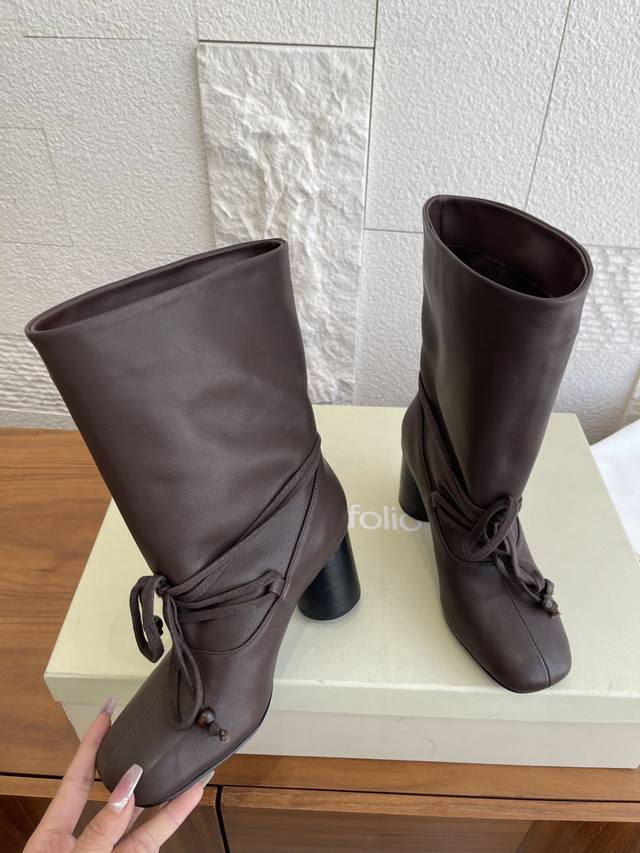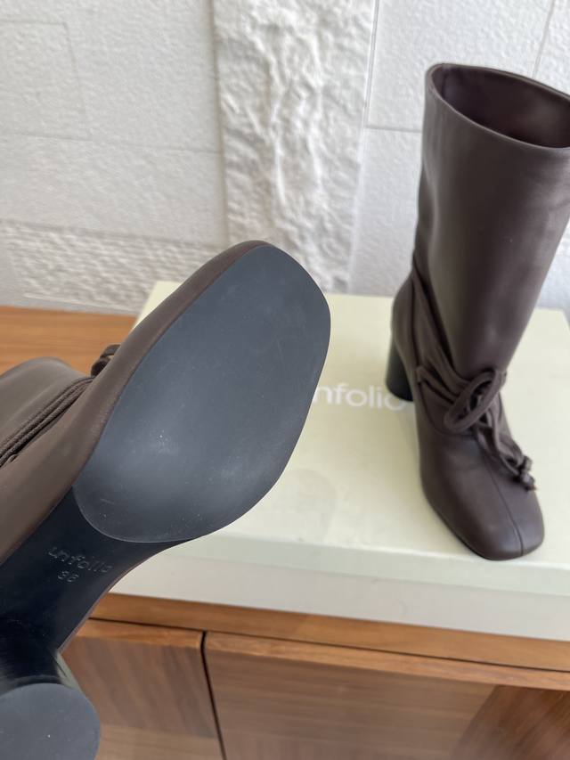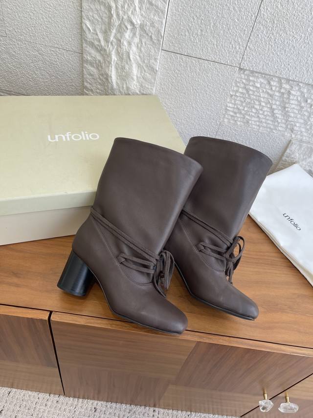 顶级版本: DDD Unfolio 2025 秋冬新款 郁可唯同款 复古束带 粗跟 短靴 DDD Unfolio这款Elliot 束带粗跟短靴鞋面均采用超柔软牛皮,质地细腻且延展优异,能随足部活动自然贴合。内里均采用弹力莱卡植物纤维材质,具备出色的弹性,贴合足部曲线且亲肤不刺激,确保长时间穿着的舒适感。鞋垫为羊皮材质,提供柔软支撑,减轻行走压力;7Cm黄金跟高保证了美观和舒适度的平衡。鞋底采用橡胶材质,纹理设计增强抓地力,适应日常地面环境,提升行走稳定性。 DDD 面料:进口牛皮 牛反绒 DDD 内里:进