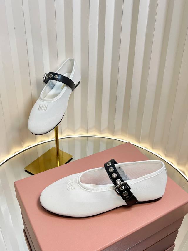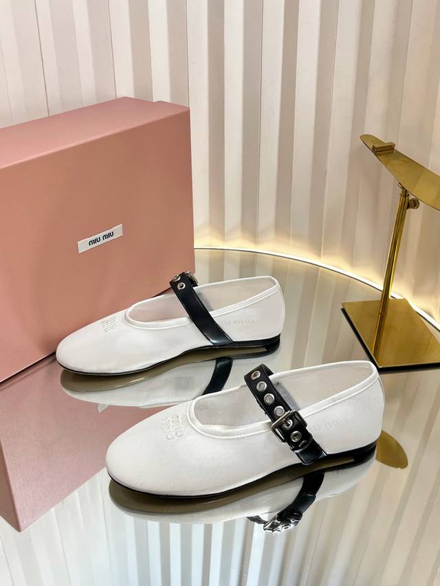 缪缪女士蝴蝶结装饰缎面芭蕾舞平底鞋独家高版 Miu Mi*2025春夏芭蕾网纱平底玛丽珍乐福鞋平底Zp开发 原版秒杀市面版本 Miu真的太少女啦 超级软糯 喜欢可以冲了