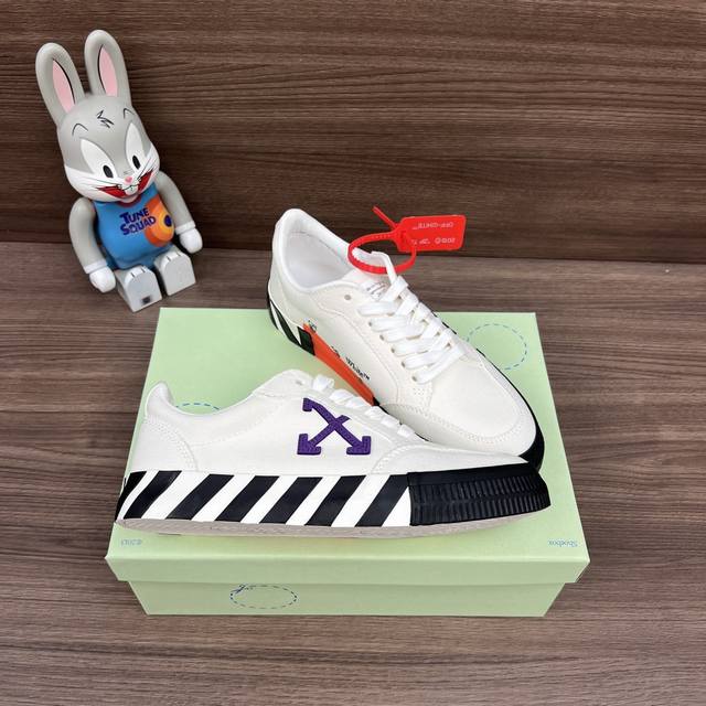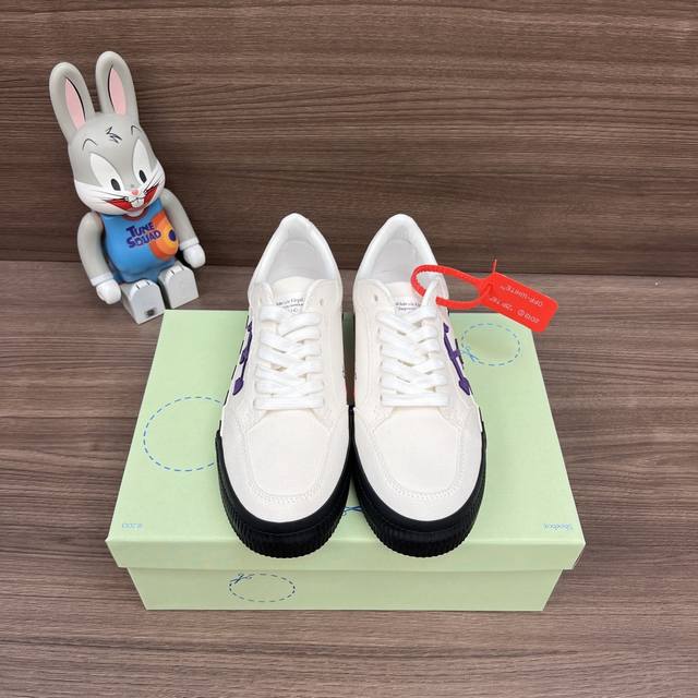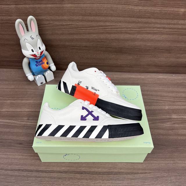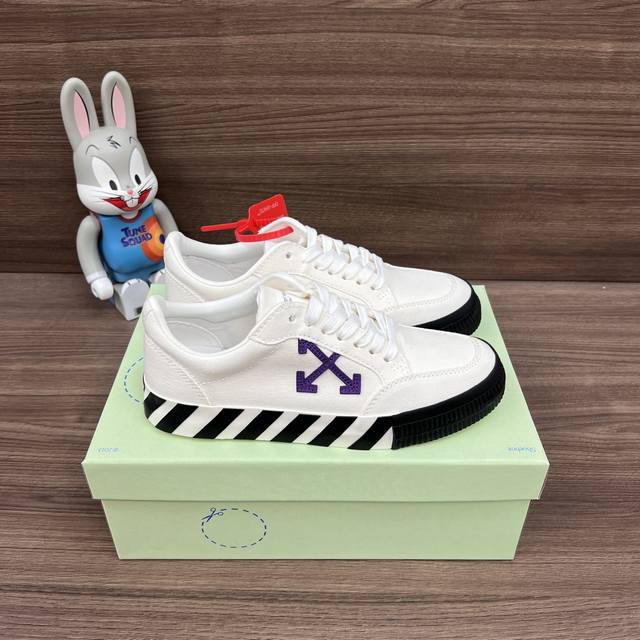 顶级版本Off-White C O Virgil Abloh Vulc Low Top 箭头低帮硫化帆布板鞋 白紫 DDD 一双充满街头韵味的棋盘格元素,亮点其