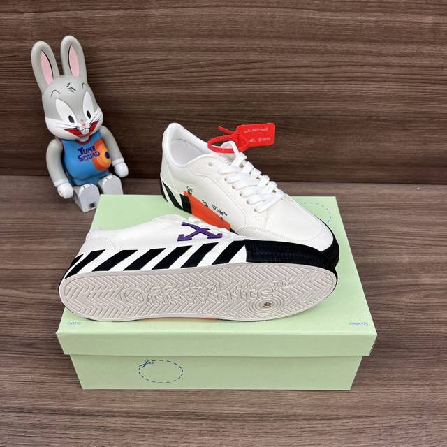 FFF 顶级版本Off-White C O Virgil Abloh Vulc Low Top 箭头低帮硫化帆布板鞋 白紫 DDD 一双充满街头韵味的棋盘格元素,亮点其实在鞋内侧的橙色瓶贴以及鞋带头的橙色细节处理。该品牌标志性的箭头标志,防盗扣和鞋带的设计以及鞋后跟的字样也极具“The Ten”系列的影子。 DDD 码数:36-47码! DDD