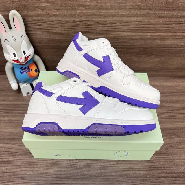 顶级版本Off-White Out Of Office 低帮滑板鞋情侣款白紫。