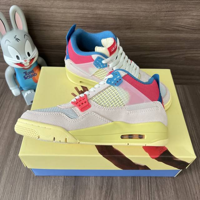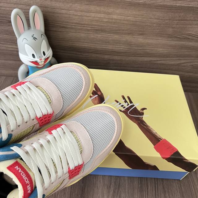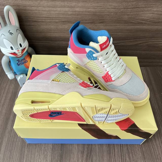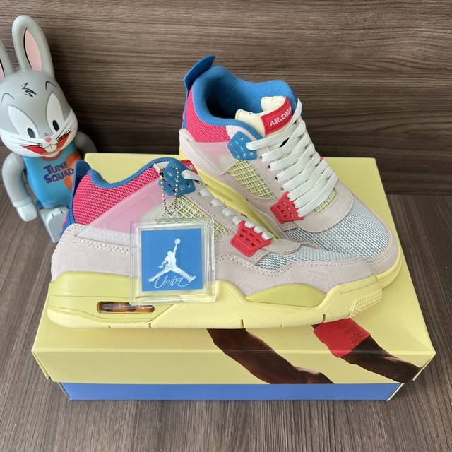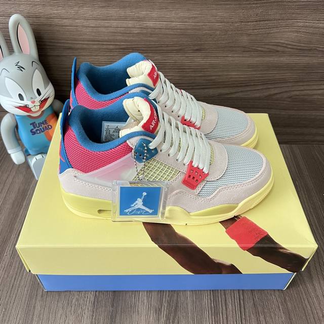 / 顶级版本Union La Xjordan Airjordan 4 Retro Sp Guavaice说唱新世代 耐磨中帮复古篮球鞋男女同款 粉红蓝。 DDD 码