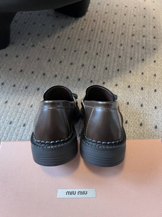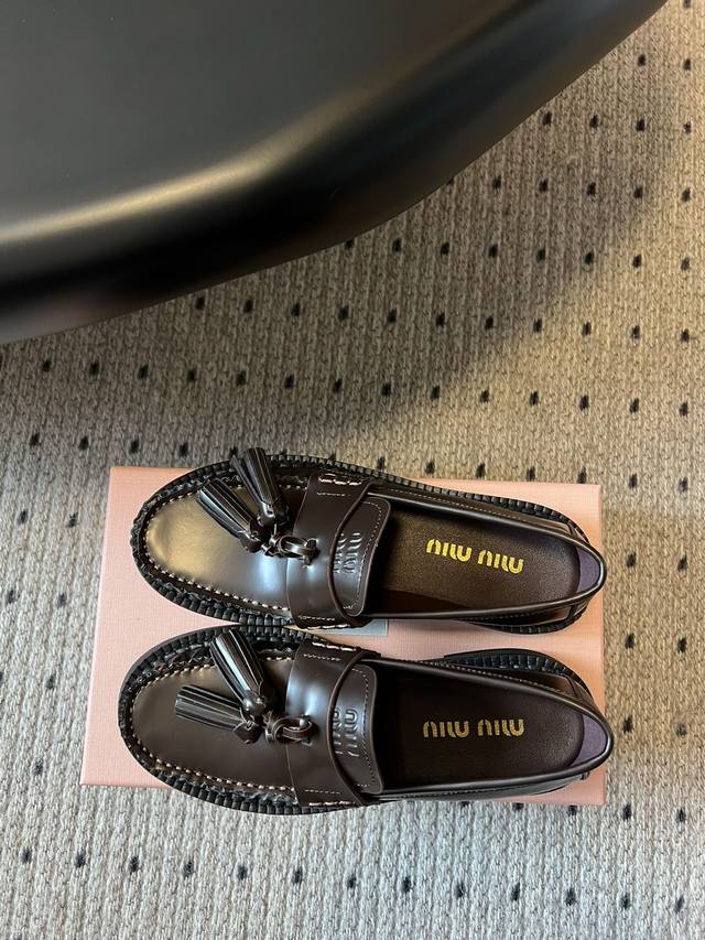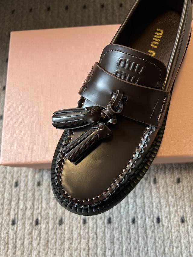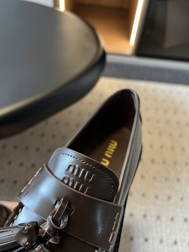 顶级版 Miu Miu 25Fw 石楠木色 新款流苏乐福鞋 新款乐福鞋好好穿,这个冬天需要一对复古感的鞋为你增添氛围感,3.5Cm高度适中,颜色高级百搭,款式俏