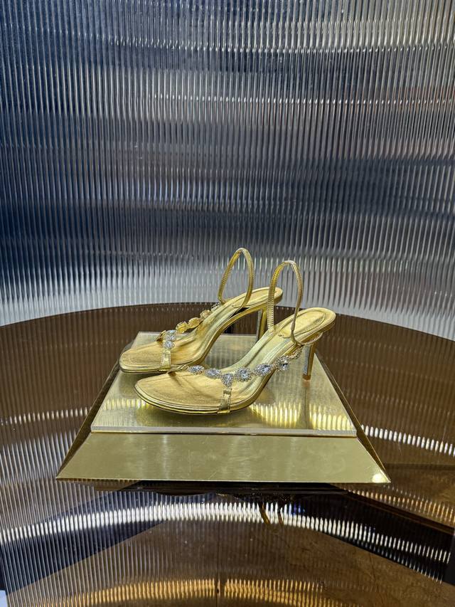 顶级版 R C 2025S重工Rc水晶宝石高跟鞋凉鞋系列 鞋面:头层金属羊皮面,珠宝级五金钻链镶嵌进口超闪昂贵施华洛水晶钻,上脚华丽,高级性感Blingblin