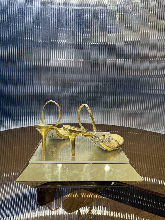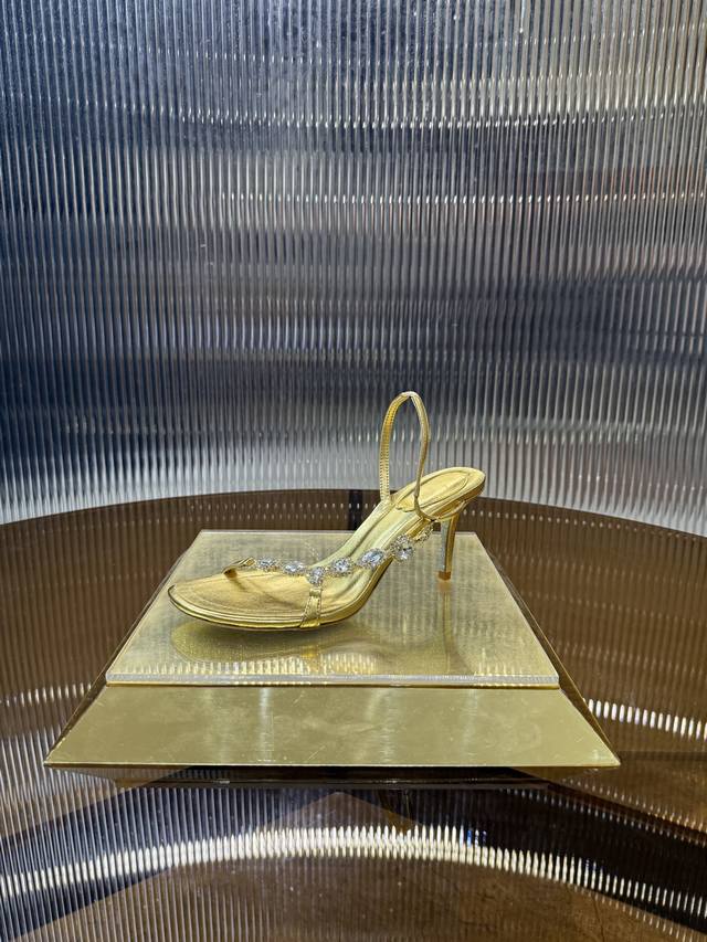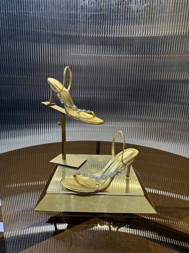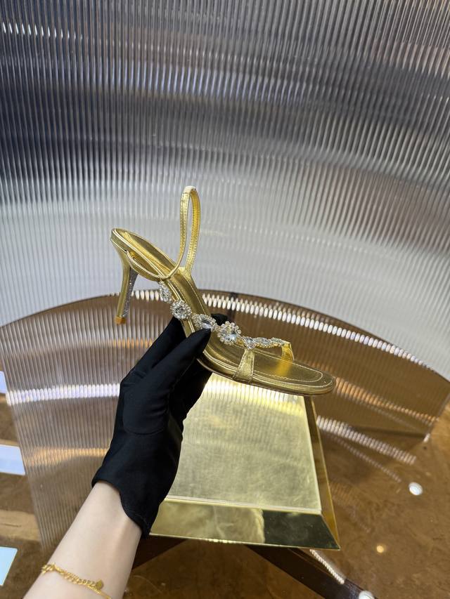 顶级版 DDD R C 2025S重工Rc水晶宝石高跟鞋凉鞋系列 DDD 鞋面:头层金属羊皮面,珠宝级五金钻链镶嵌进口超闪昂贵施华洛水晶钻,上脚华丽,高级性感Blingbling精致逼人! DDD 内里:粒面珠光羊皮里 DDD 大底:原版一致闪银金扣真皮大底 DDD Size:34-43 34.40.41.42.43订做不退换 DDD Color:金色 黑色 DDD 跟高:约7.5 可定制9.5 DDD