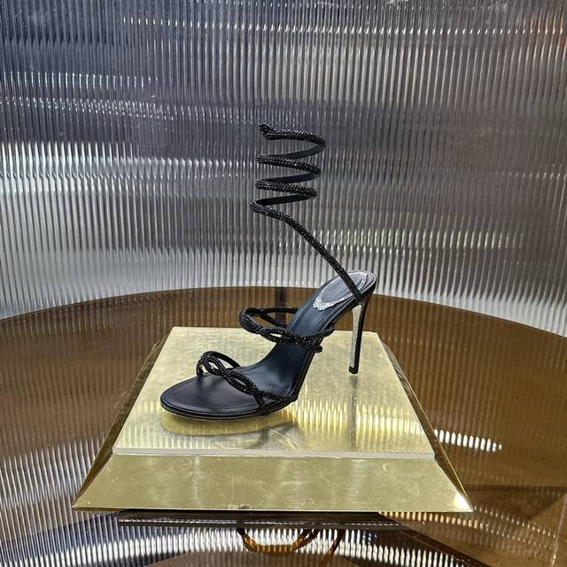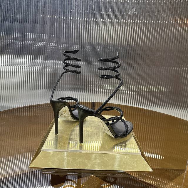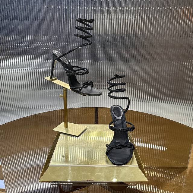 顶级版 R C 2025S Rc春夏爆红系列,全新配色露趾交叉缠绕水钻镶嵌高跟跟拖鞋凉鞋 商品描述:Caterina细致交叉线条和鞋跟完整包覆着发亮的水钻,像两