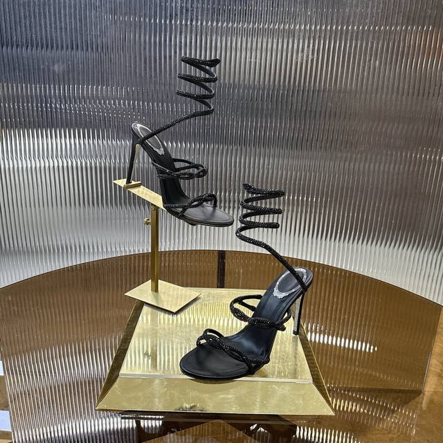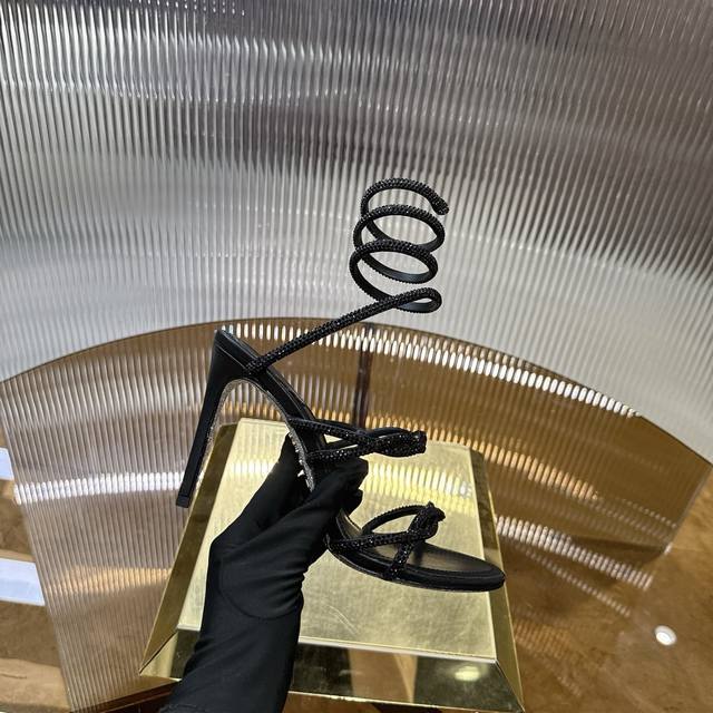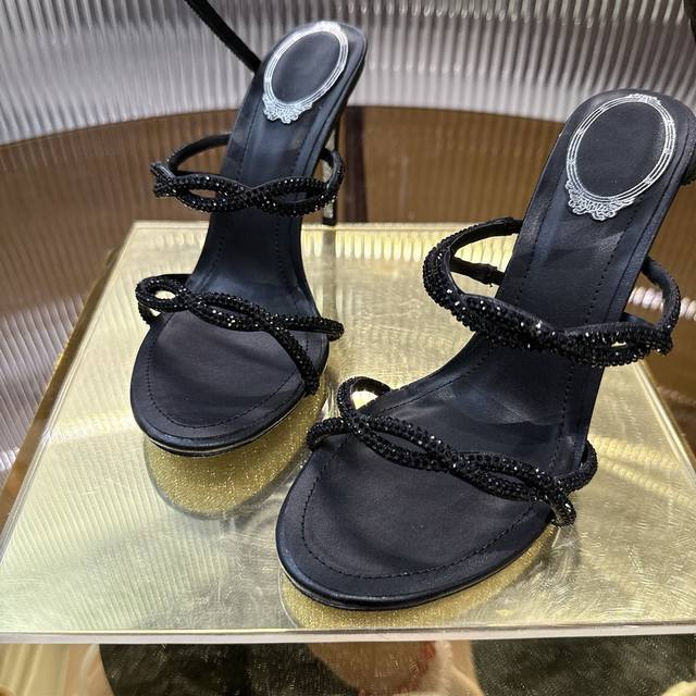 / 顶级版 R C 2025S Rc春夏爆红系列,全新配色露趾交叉缠绕水钻镶嵌高跟跟拖鞋凉鞋 商品描述:Caterina细致交叉线条和鞋跟完整包覆着发亮的水钻,像两