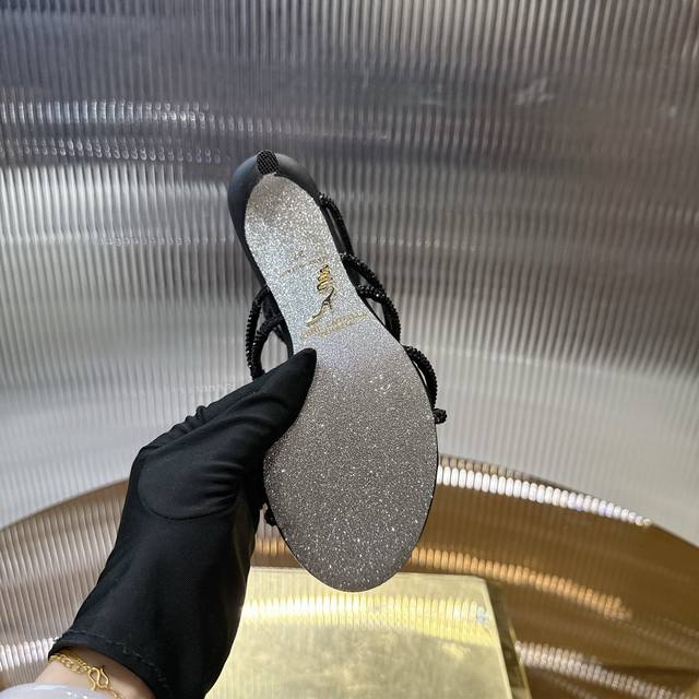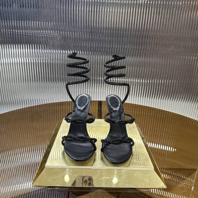 顶级版 R C 2025S Rc春夏爆红系列,全新配色露趾交叉缠绕水钻镶嵌高跟跟拖鞋凉鞋 商品描述:Caterina细致交叉线条和鞋跟完整包覆着发亮的水钻,像两条灵蛇相互交叉缠绕水晶缀饰在足背闪耀着,缤纷的色泽更显亮丽,完美体现名媛优雅气质!低调而不失奢华! 内里:粒面珠光羊皮里 大底:原版一致金扣闪银真皮大底 Size:34-43 34.40.41.42.43订做不退换 Color:7个配色 跟高:约9.5Cm