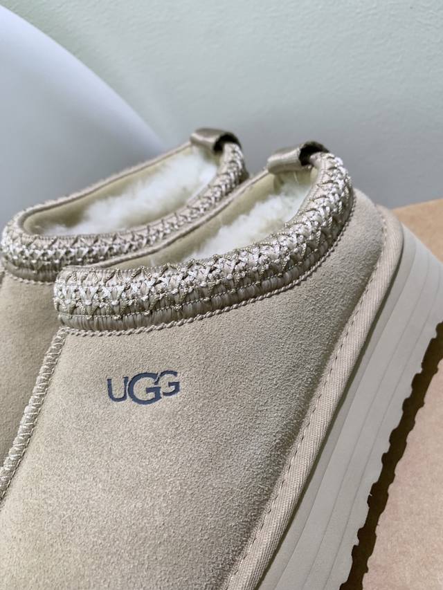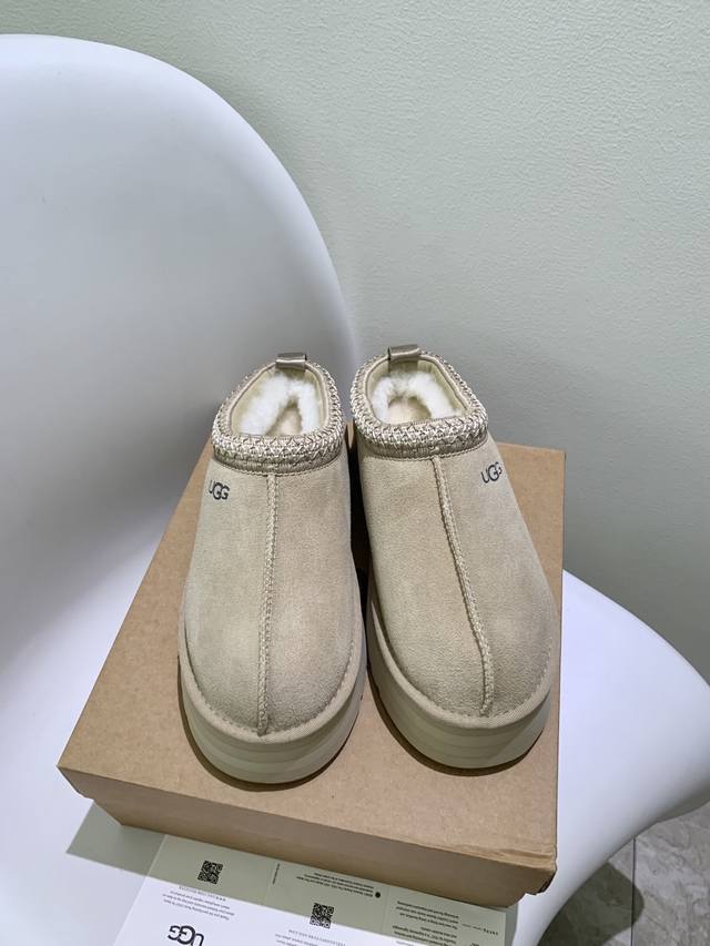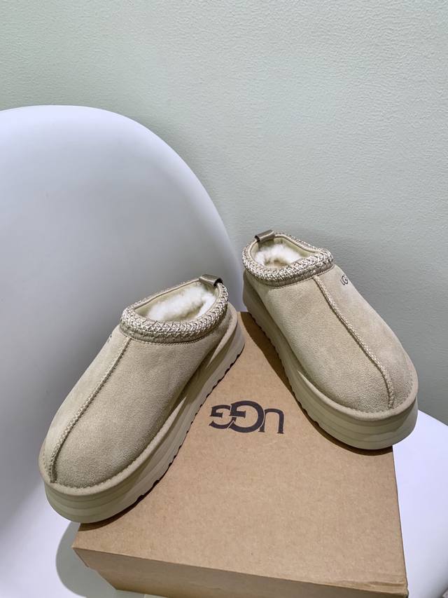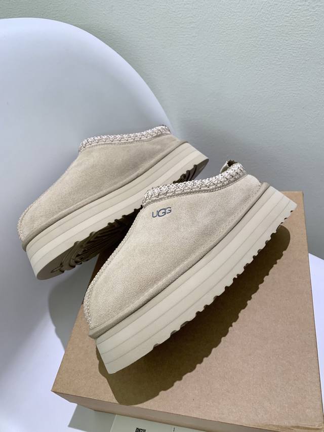 / 顶级版 Ugg秋季女士休闲舒适厚底塔茨乐福鞋 设计为一脚蹬懒人鞋型,简约方便穿脱;鞋型圆润可爱,带有品牌标志性的低调Logo,风格休闲百搭。鞋底有一定厚度,兼具