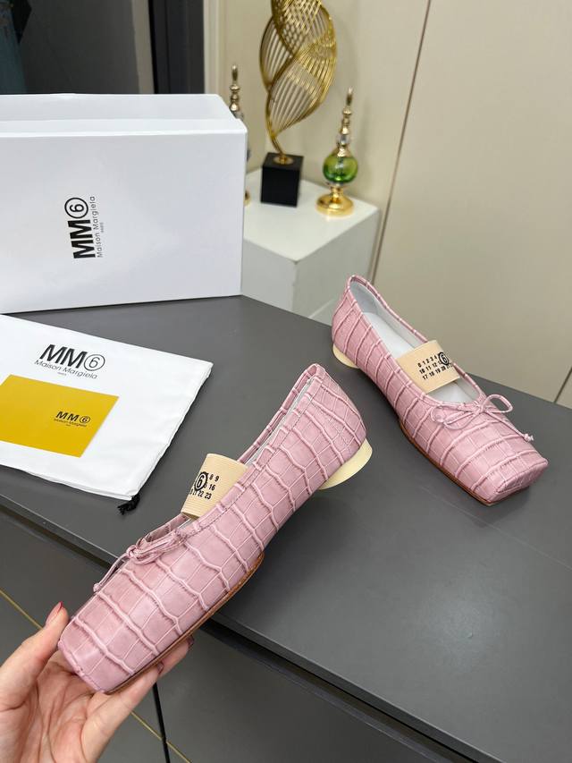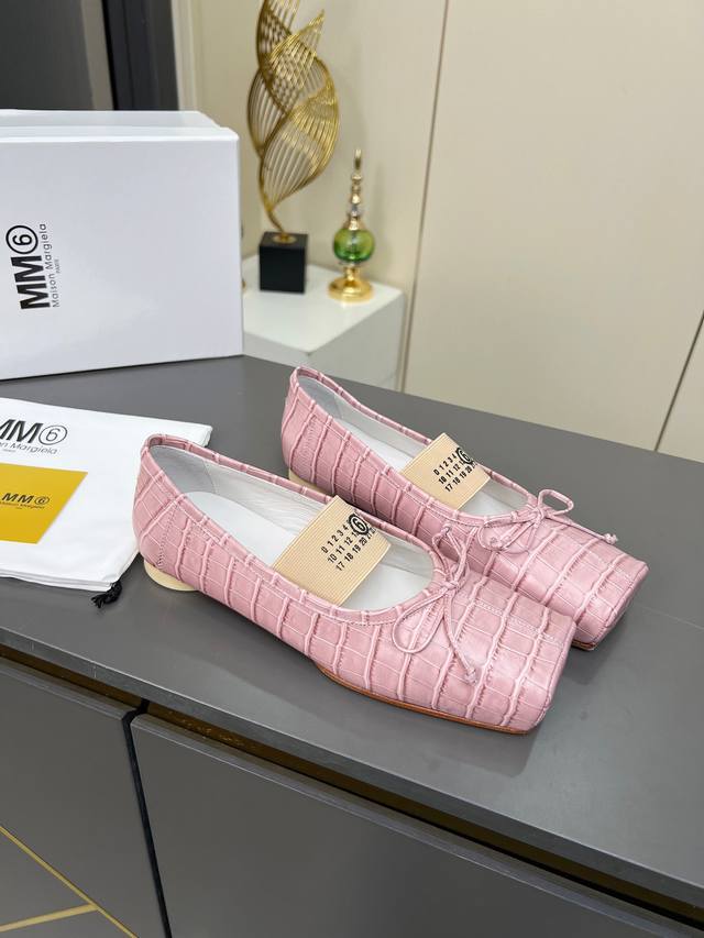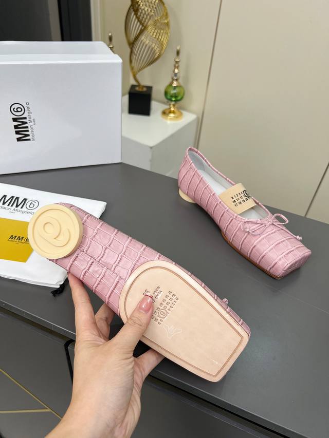 / 马吉拉最近超级的芭蕾舞猪嘴鞋 鬼才设计师品牌,一个轻奢品牌 舒适度不用说,肯定会很舒服的,廓形 独具匠心的鳄鱼纹皮料和对比材质的拼贴均是 Mm6 Maison