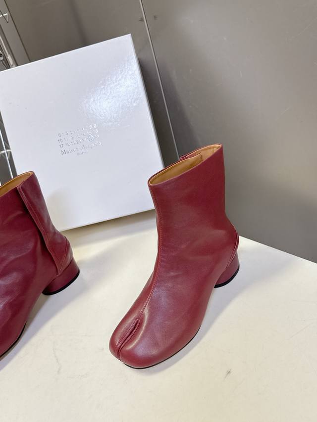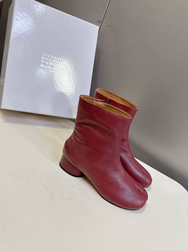 马吉拉Mm6秋冬最新款复古短靴 DDD 简约的配色和百搭 上脚 时尚感十足 DDD 上脚超级舒服的一款,人手必备! DDD 面料采用原版定制环保羊皮材料 更贴脚 DDD 垫脚内里采用水染牛皮内里 DDD 大底对标Zp意大利真皮大底 跟高3.5Cm 配置原版包装码数:35-40 DDD