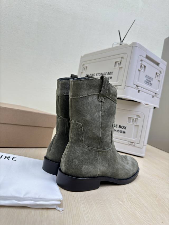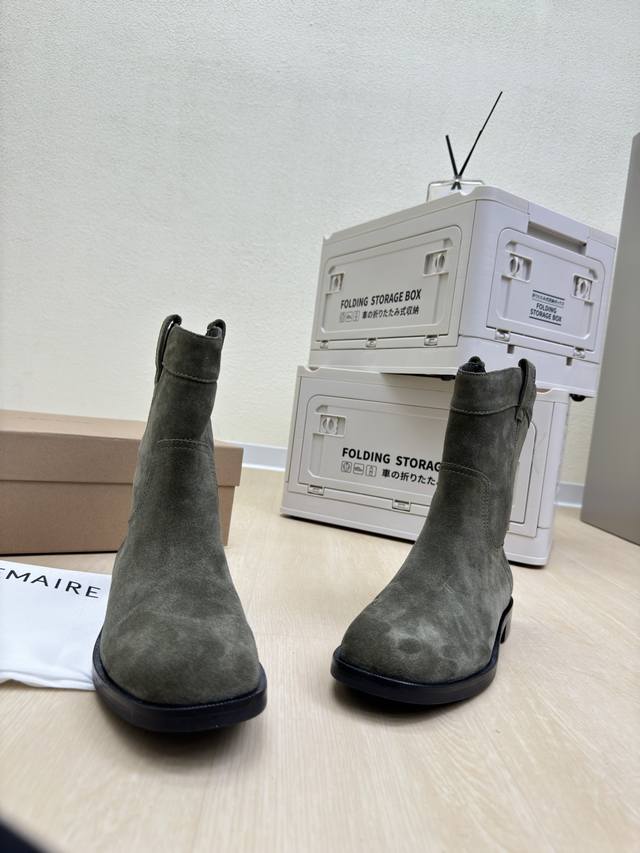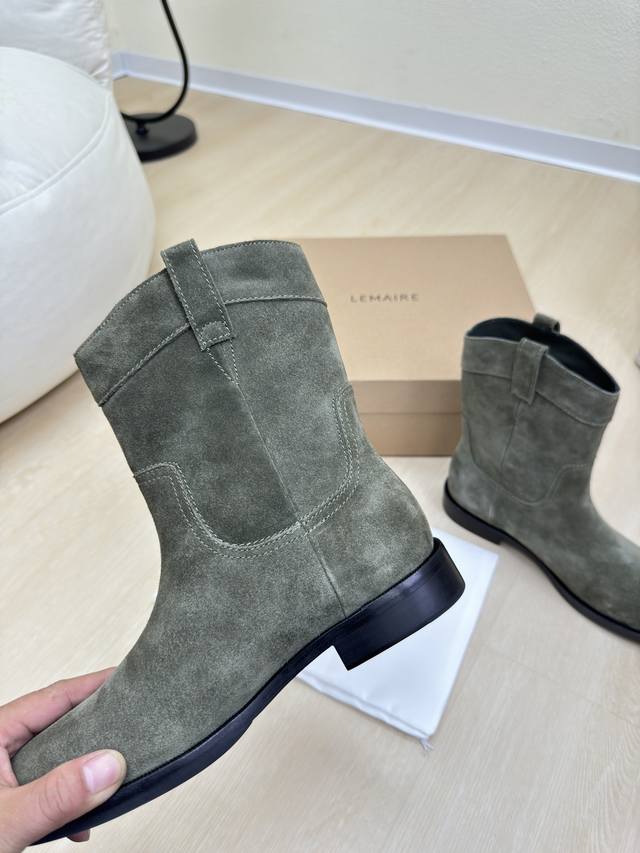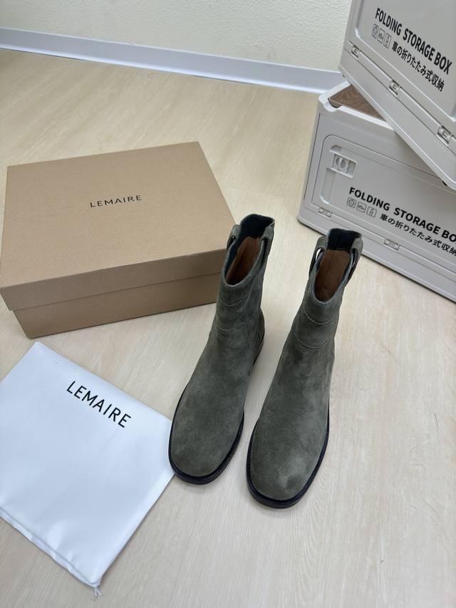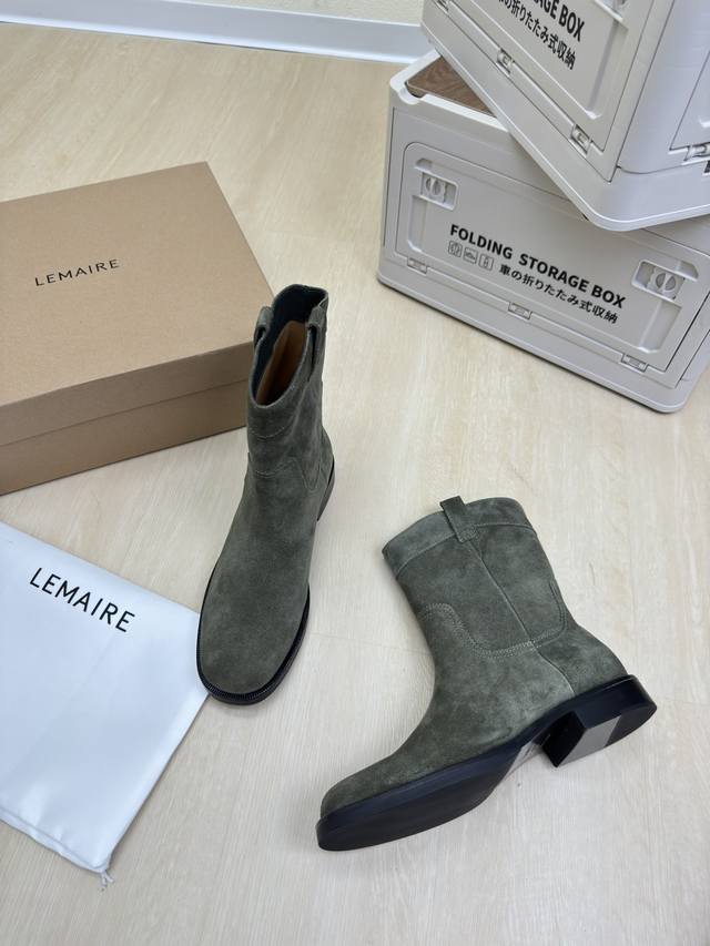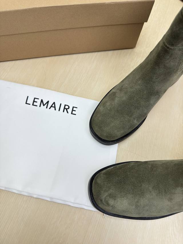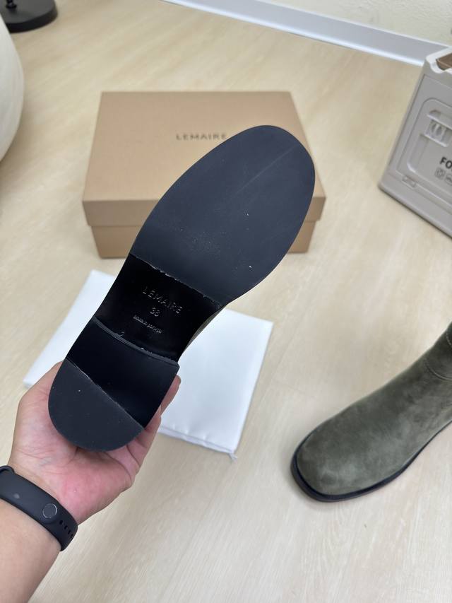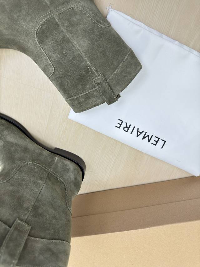 / 骑士靴 Lemaire 来自法国巴黎 设计师品牌 女鞋 头层反绒牛皮 真皮包跟 档次满满 深绿 防滑大底设计 将肌肤分割成块面,有着若隐若现的魅力。 弹力 元素