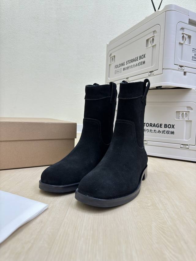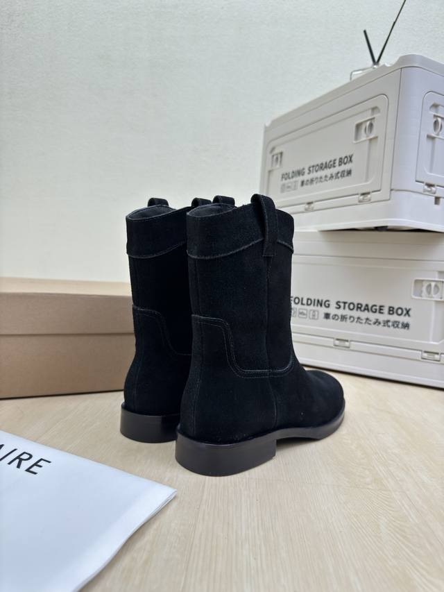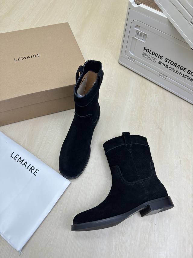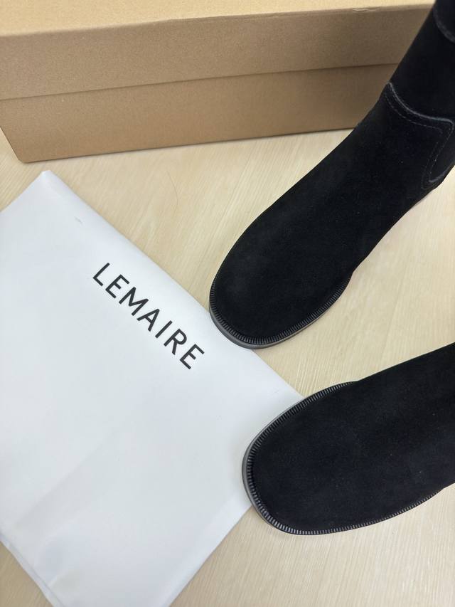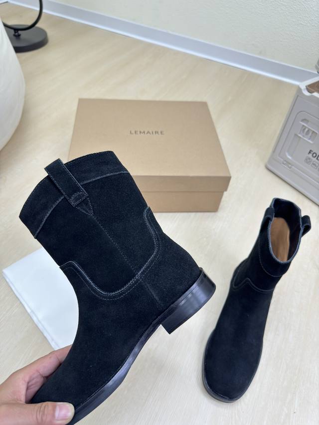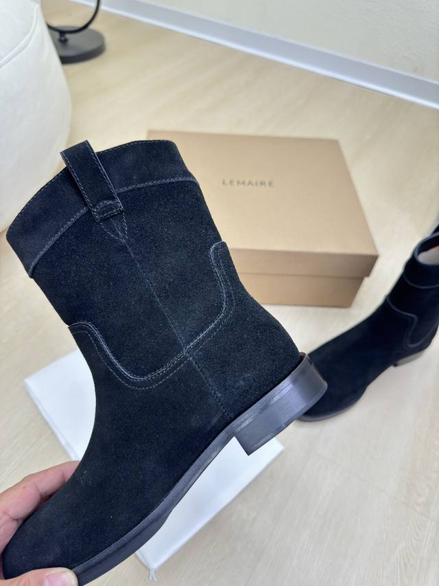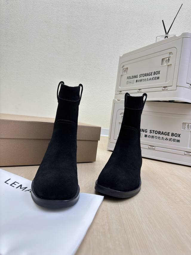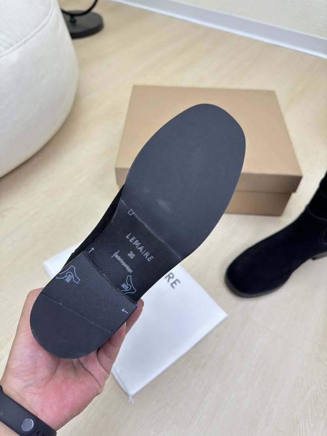 骑士靴 Lemaire 来自法国巴黎 设计师品牌 女鞋 头层反绒牛皮 真皮包跟 档次满满 黑色 防滑大底设计 将肌肤分割成块面,有着若隐若现的魅力。 弹力 元素
