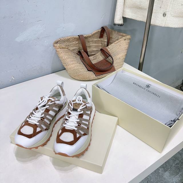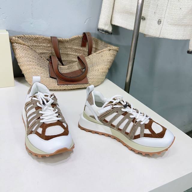 高品质出厂女 !男 !小众潮牌情侣款! Brunellocucinelli Bc25秋冬新款新品厚底阿甘休闲运动鞋 装饰镶珠运动鞋 原版一比一复刻高丝光牛反绒、羊皮拼接特殊材料 搭配五金链条不掉色,五金尺无气泡。 鞋面采用进口牛反绒拼接科技网布 内里透气网布 垫脚羊皮 垫脚高密度弹力乳胶 高弹力乳胶鞋垫 原版Tpr发泡大底 轻便舒适 码数:女35-40 40 定做不退换 :男40-45 45定做不退换 配原版包装