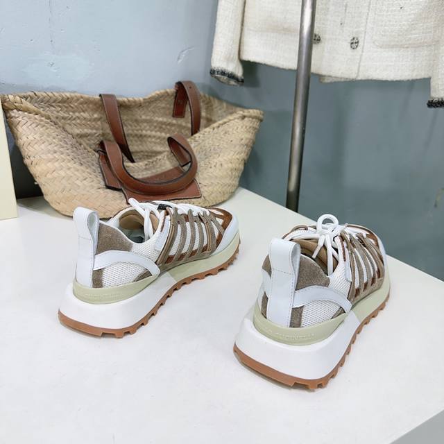 高品质出厂女 !男 !小众潮牌情侣款! Brunellocucinelli Bc25秋冬新款新品厚底阿甘休闲运动鞋 装饰镶珠运动鞋 原版一比一复刻高丝光牛反绒、