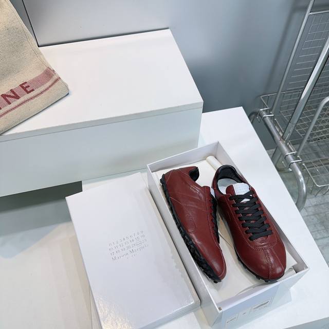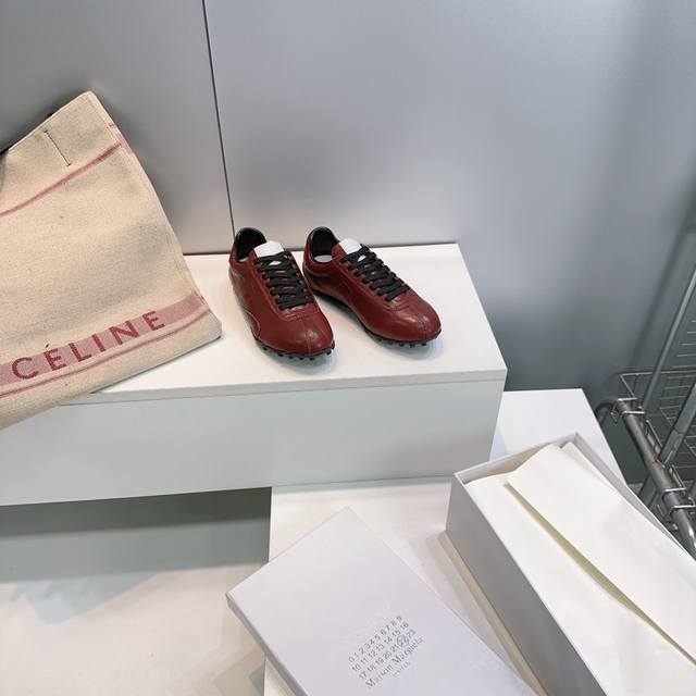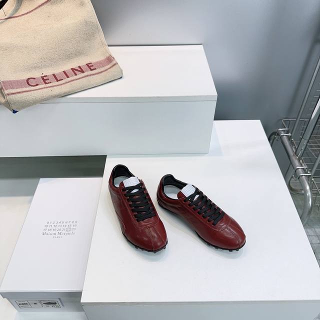 高品质出厂女 !男 !情侣款!顶级品质Maison Margiela 25Ss秋冬新品Mm6德训鞋阿甘休闲鞋饼干鞋! 太戳时髦点了 色调柔和又高级 设计悄悄增高还特显腿细 不管搭休闲装还是轻复古风 都能一键解锁随性又亮眼的造型~ 搭配马吉拉新出的厚底德训,让我直接比例拉高的同时,也给原本成熟的老钱风增加一丝活力,别看鞋底厚厚的,鞋子意外的轻 在城市里航行一整天也不累 鞋面采用进口水洗牛皮 内里垫脚羊皮 原版开模橡胶大底 厚底:3Cm 码数:女35-40 40定不退换 :男40-45 45定做不退换 配原版
