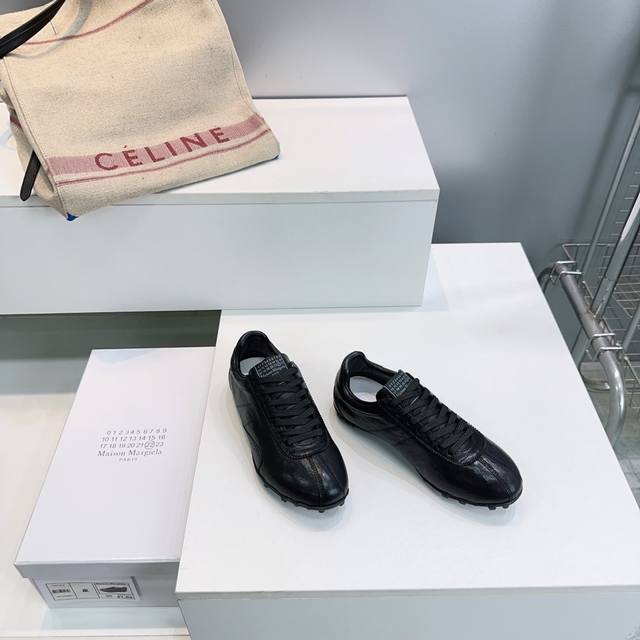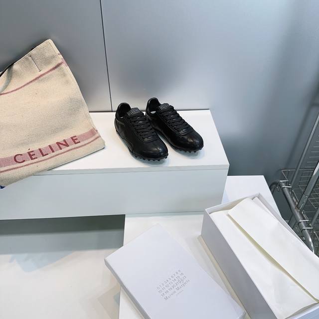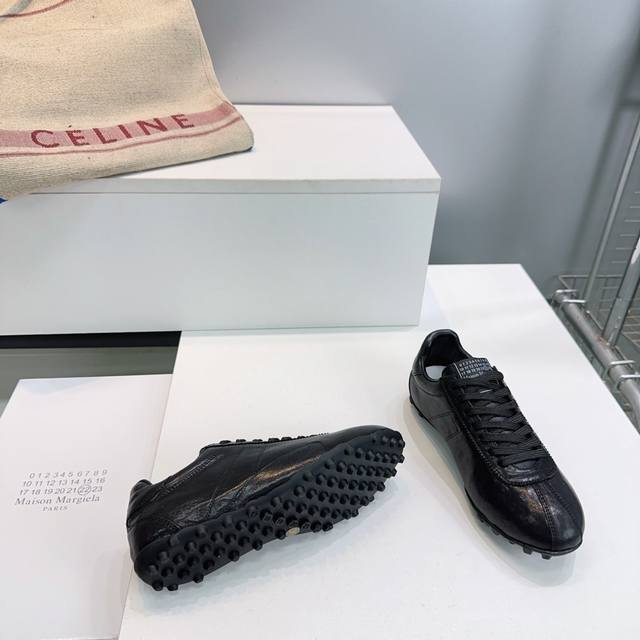 高品质出厂女 !男 !情侣款!顶级品质Maison Margiela 25Ss秋冬新品Mm6德训鞋阿甘休闲鞋饼干鞋! 太戳时髦点了 色调柔和又高级 设计悄悄增高还特显腿细 不管搭休闲装还是轻复古风 都能一键解锁随性又亮眼的造型~ 搭配马吉拉新出的厚底德训,让我直接比例拉高的同时,也给原本成熟的老钱风增加一丝活力,别看鞋底厚厚的,鞋子意外的轻 在城市里航行一整天也不累 鞋面采用进口水洗牛皮 内里垫脚羊皮 原版开模橡胶大底 厚底:3Cm 码数:女35-40 40定不退换 :男40-45 45定做不退换 配原版